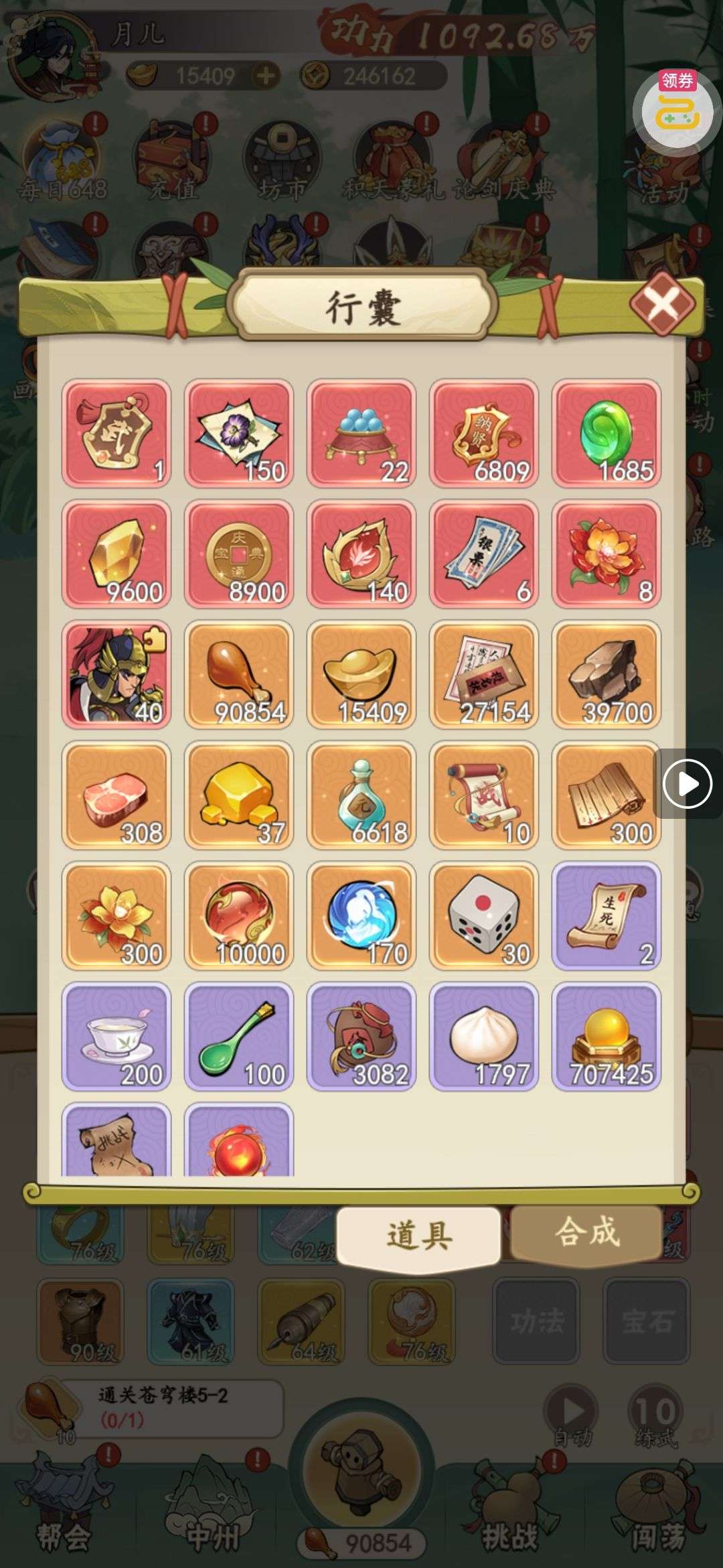 30张648真充卡豪礼、侠客灵丹*10、侠客神丹*10、侠客金丹*1、专属挑战令*1(每个账号限领一次)
