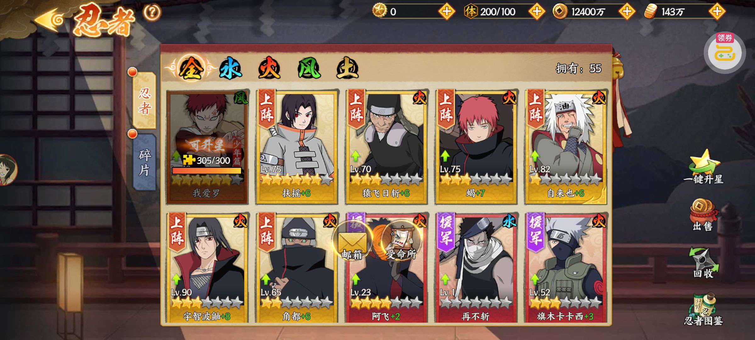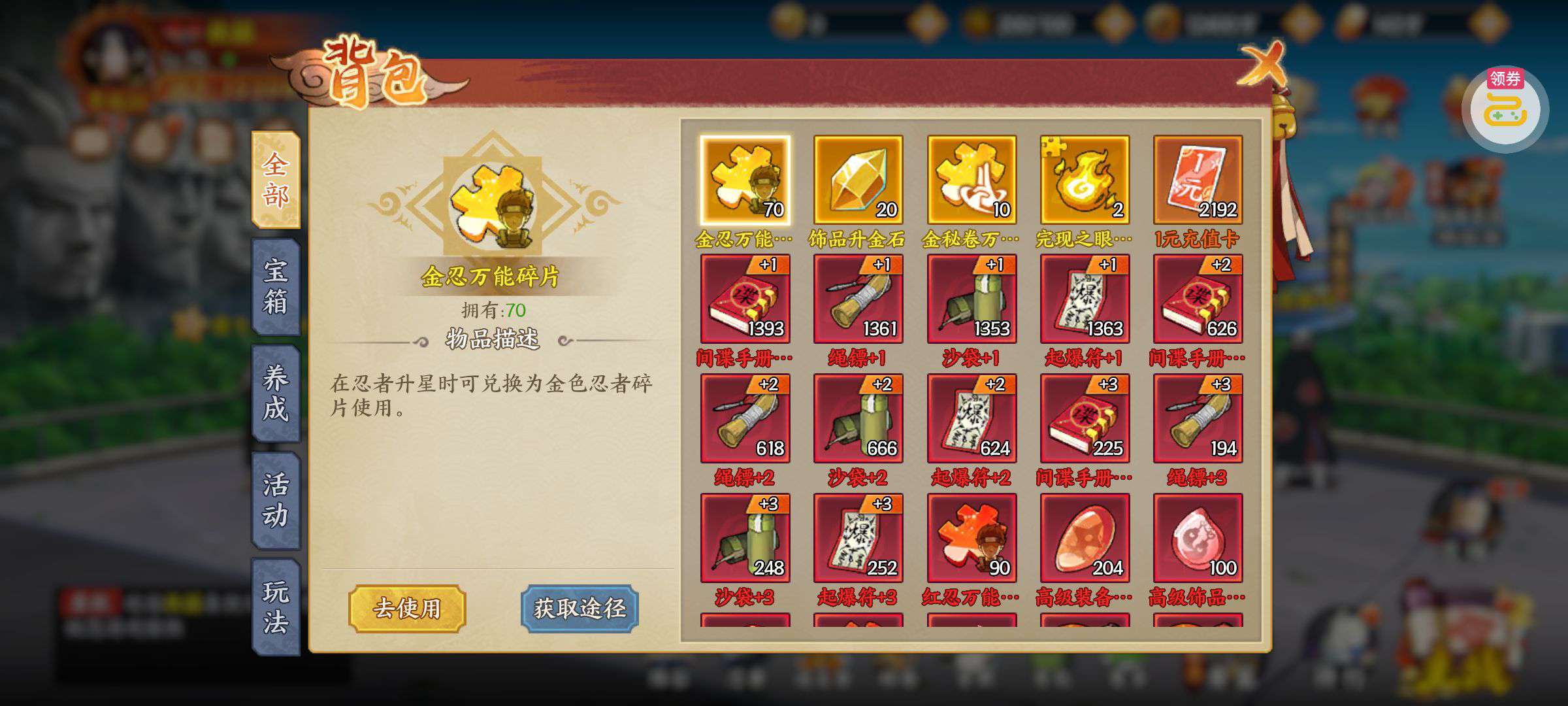 那些金色忍者就差几十个,又可以升星了,差不多还可以领个1000个那个狗牌可以换东西,这个服才开没多久,现在是个第二名