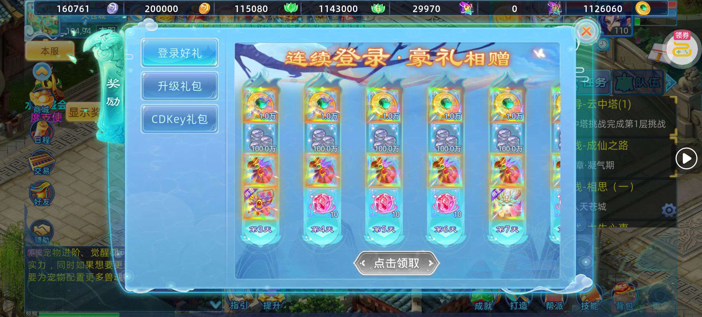 夺宝券*1、比武令*1、5星随机将魂*10(每个账号限领一次)