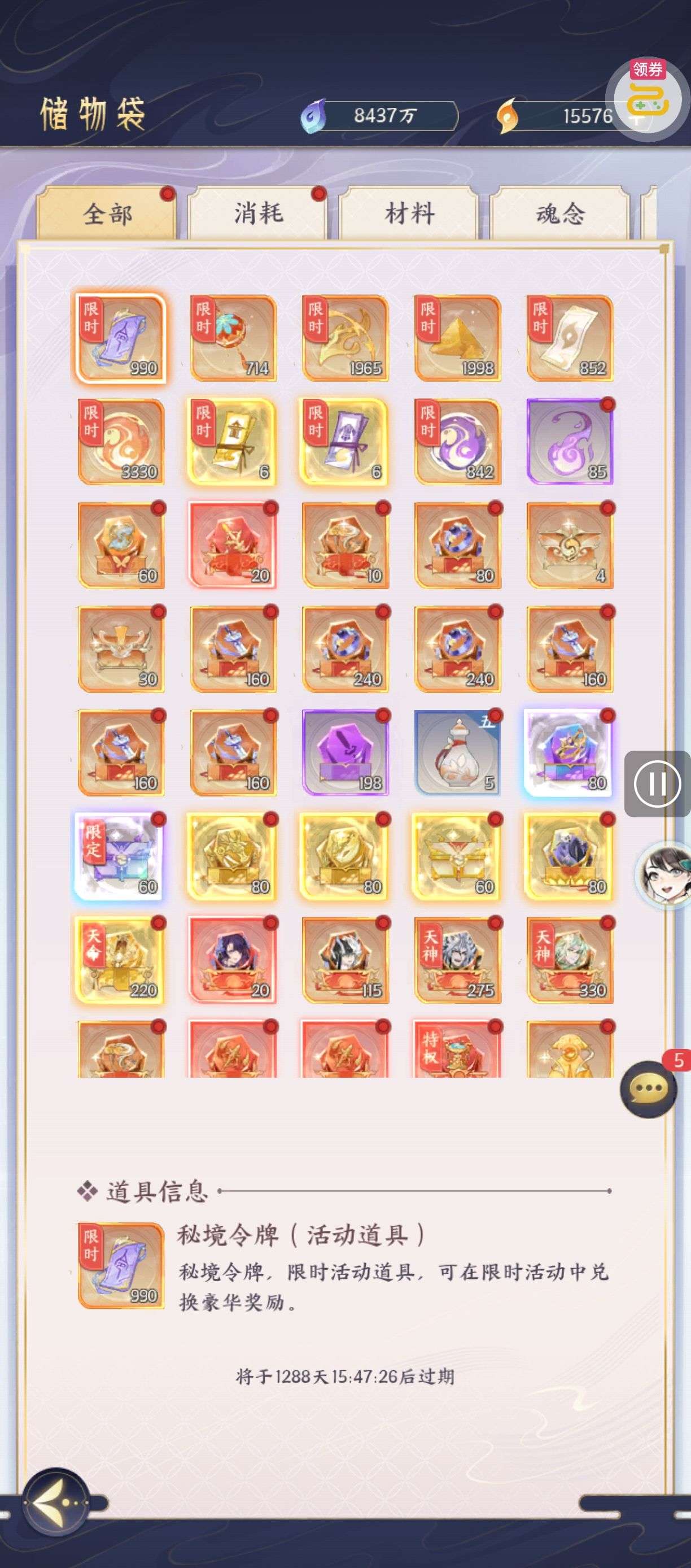 夺宝券*1、比武令*1、5星随机将魂*10(每个账号限领一次)