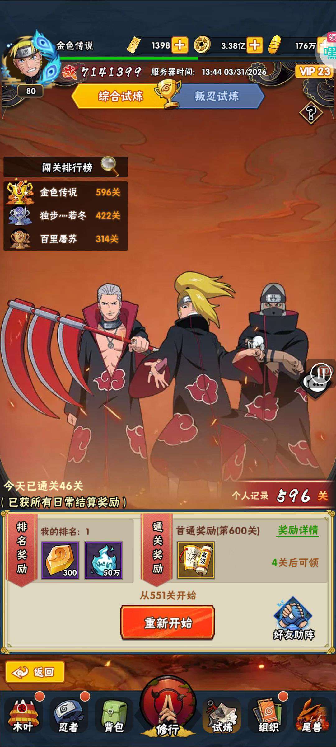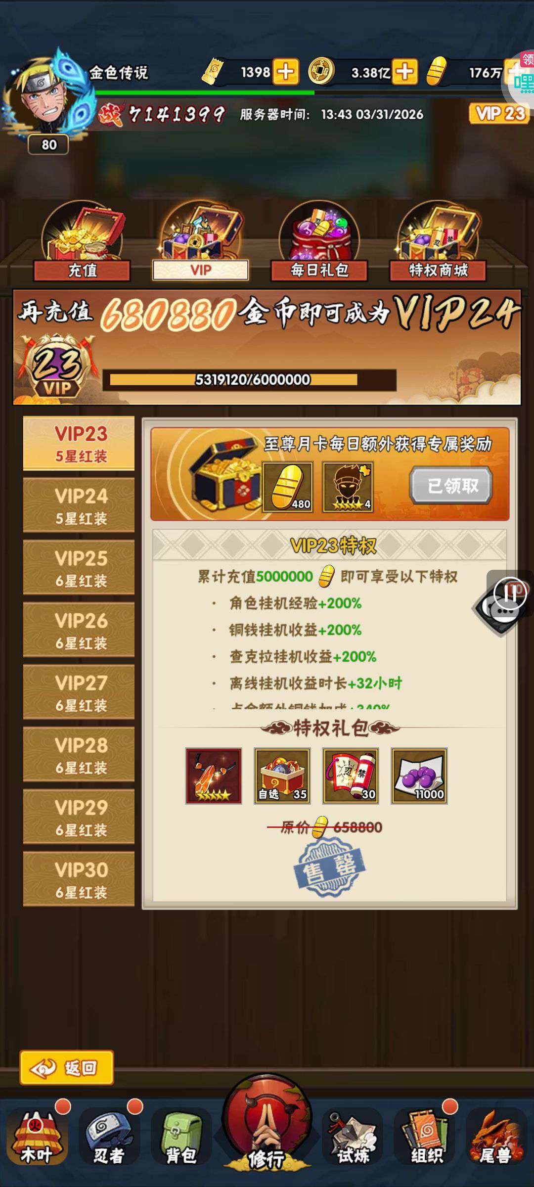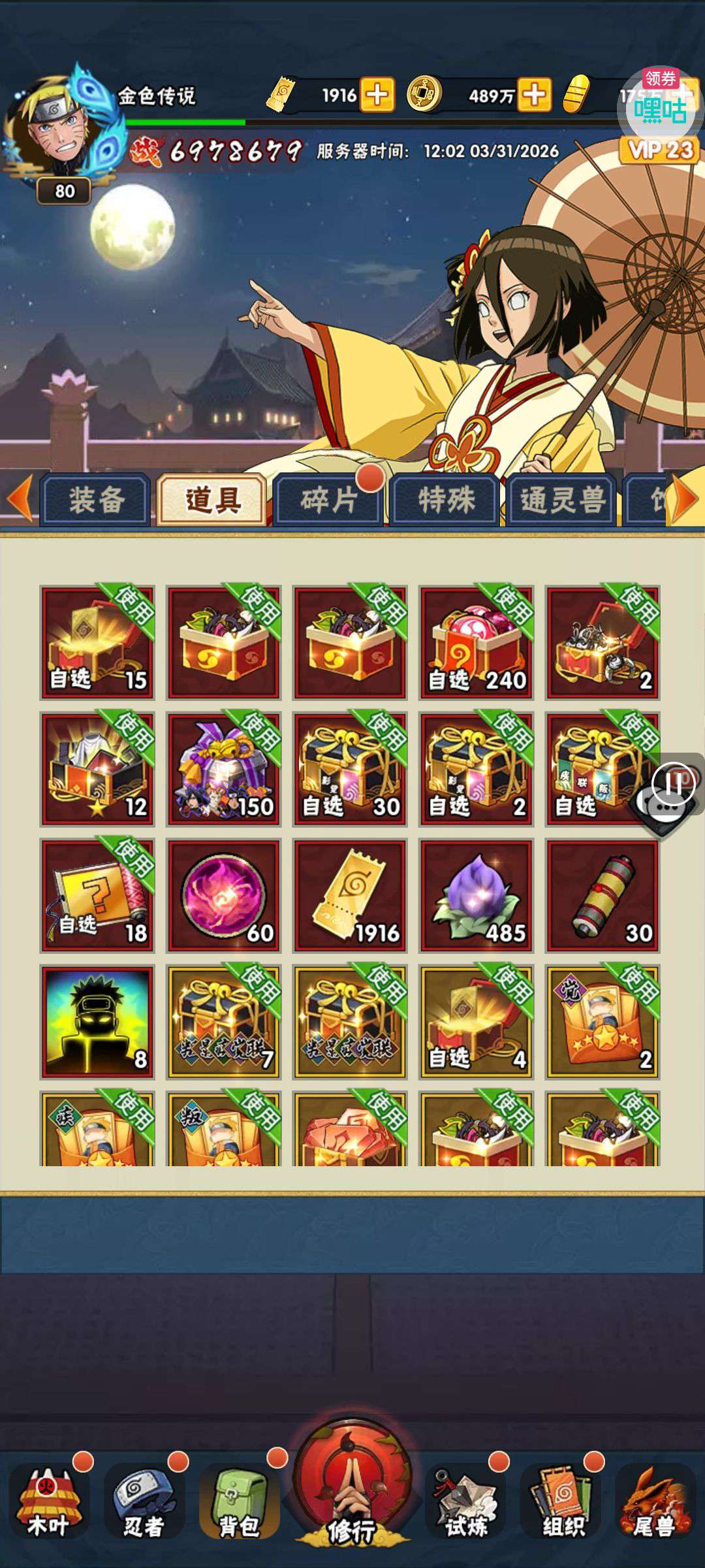 五阵营输出自选包*1、豪华材料自选礼包*2、高级忍法帖*20(每个账号限领一次)