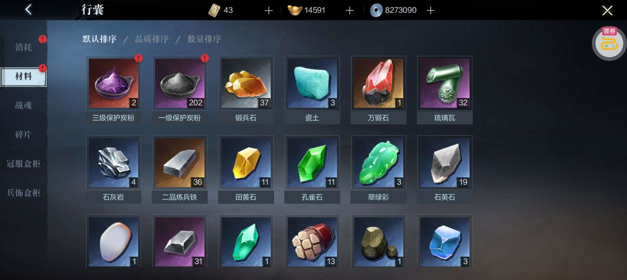 芯片熔炼石*1、离子探针*50、净化金属*50(每个账号限领一次)