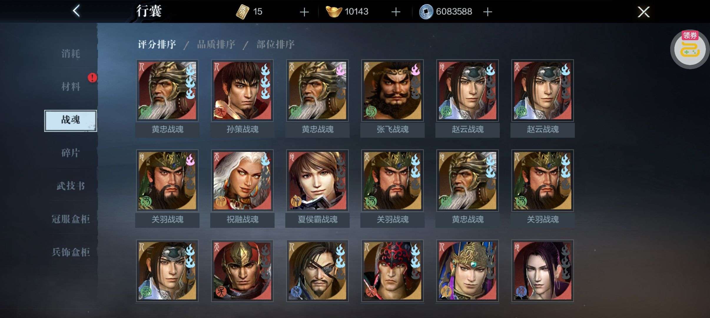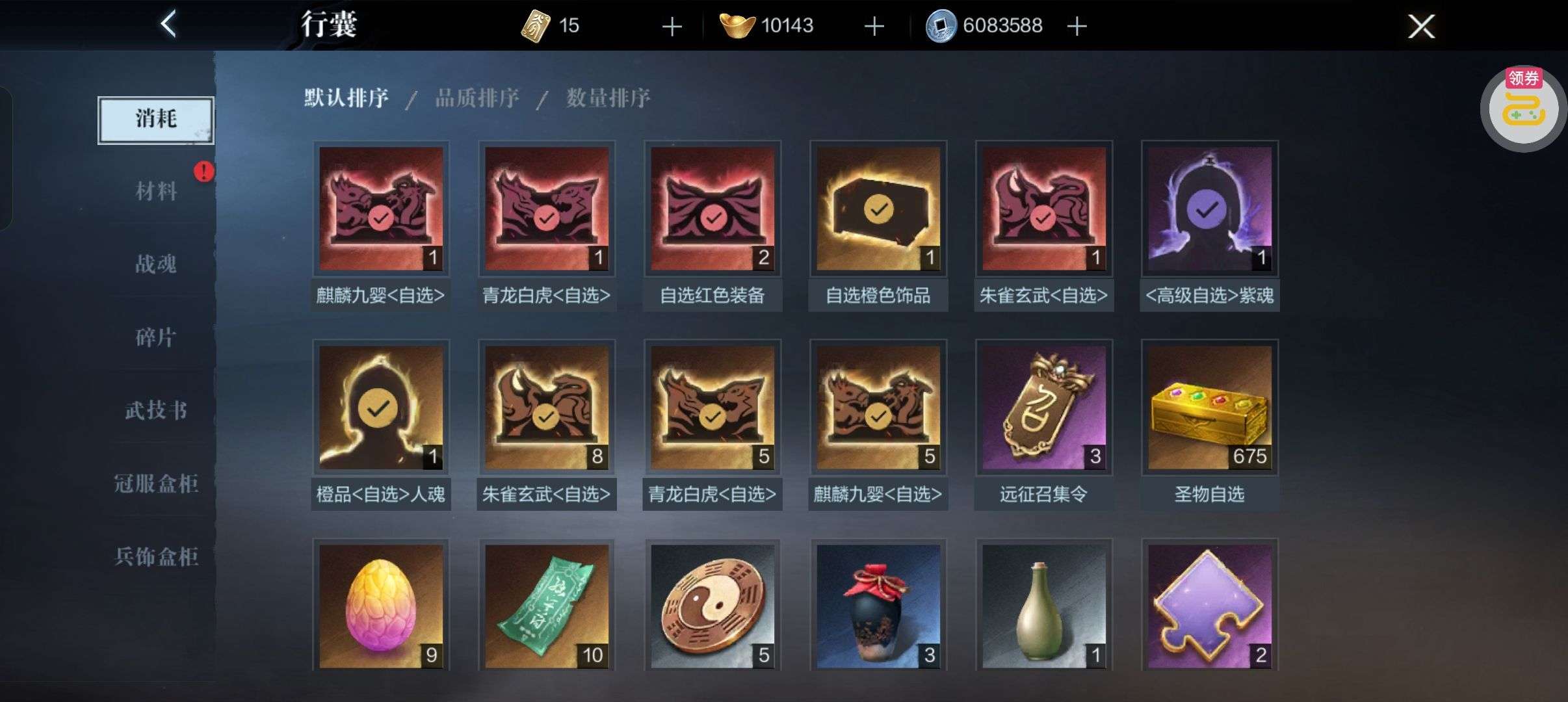 夺宝券*1、比武令*1、5星随机将魂*10(每个账号限领一次)