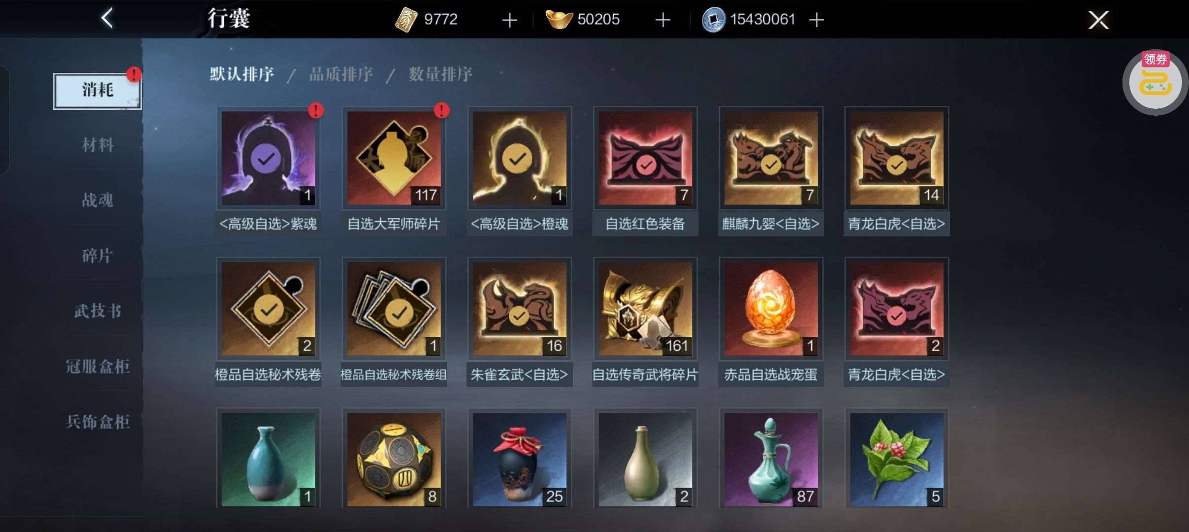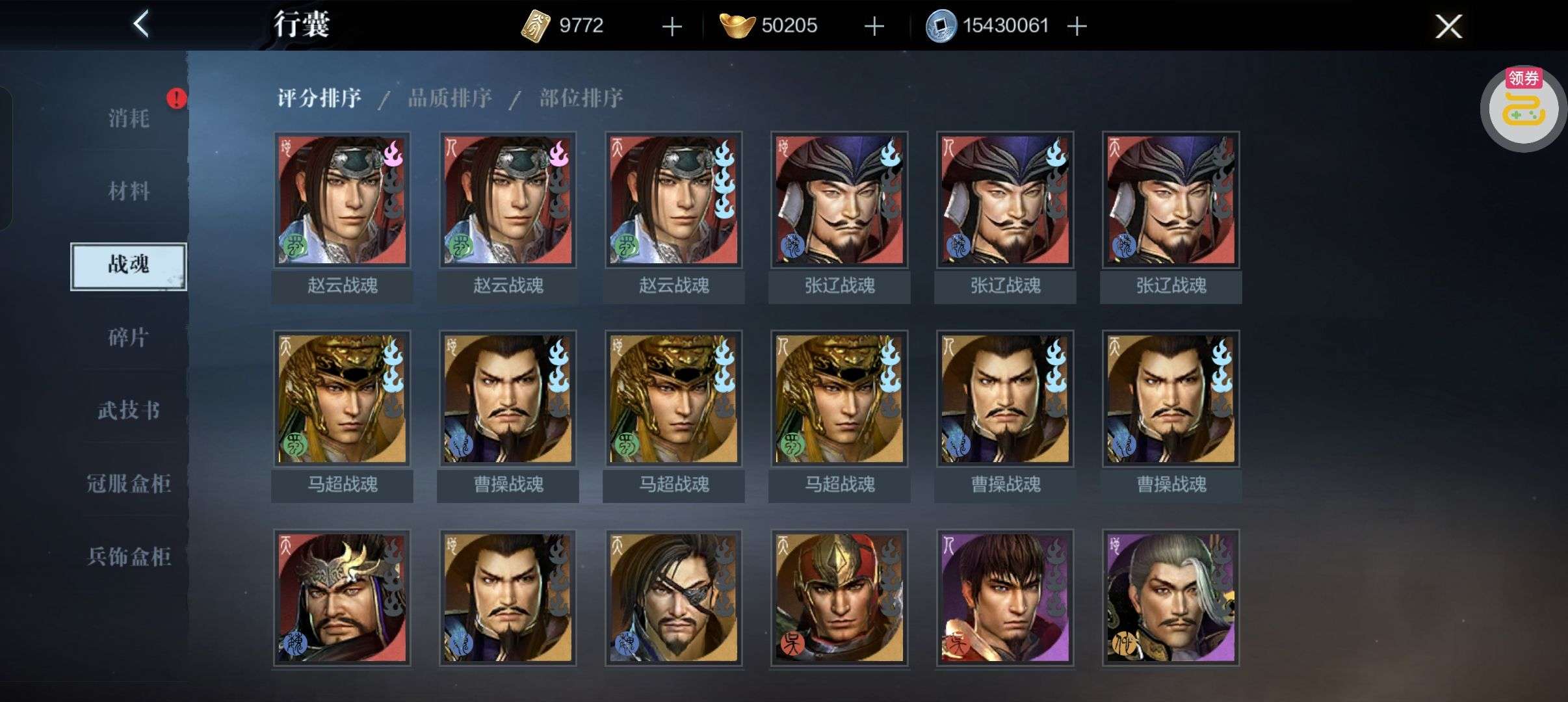 夺宝券*1、比武令*1、5星随机将魂*10(每个账号限领一次)