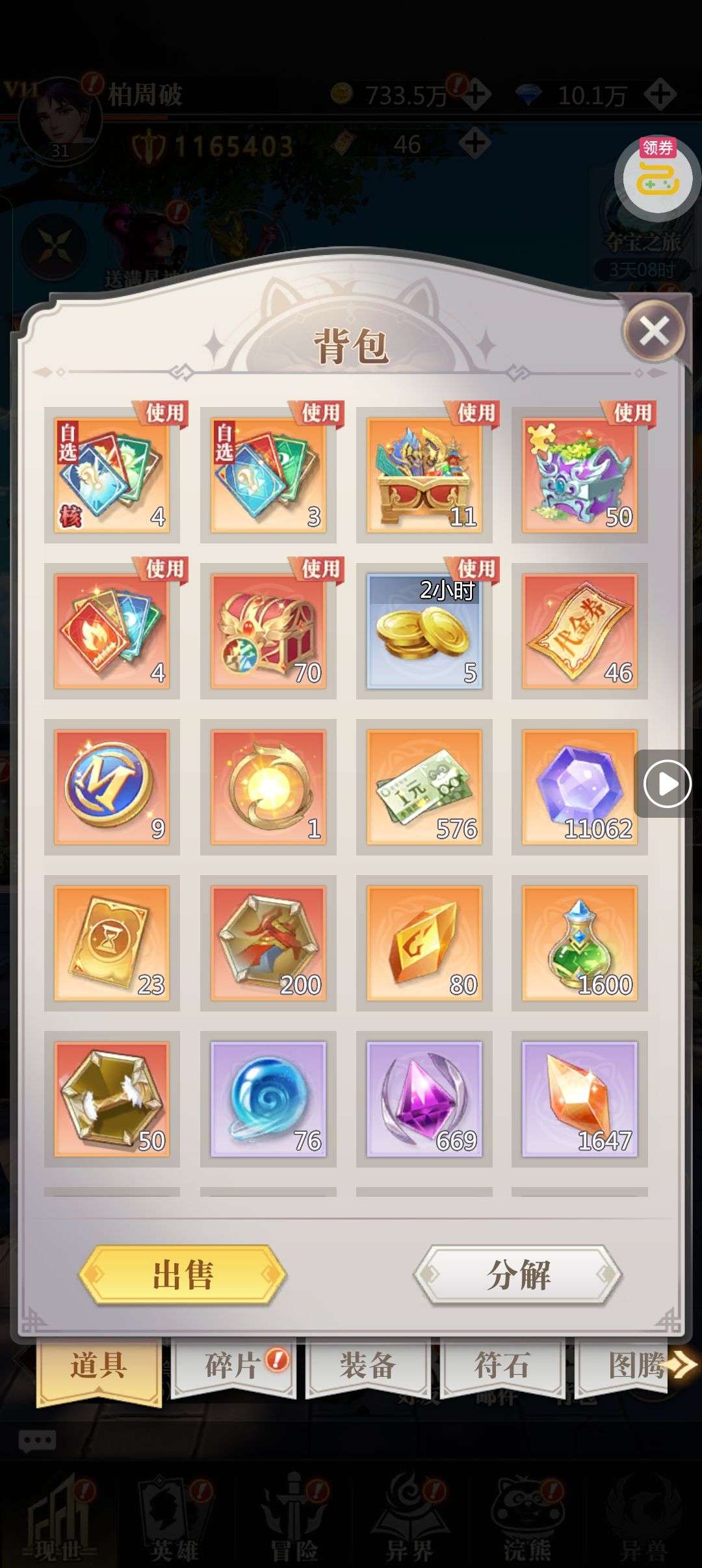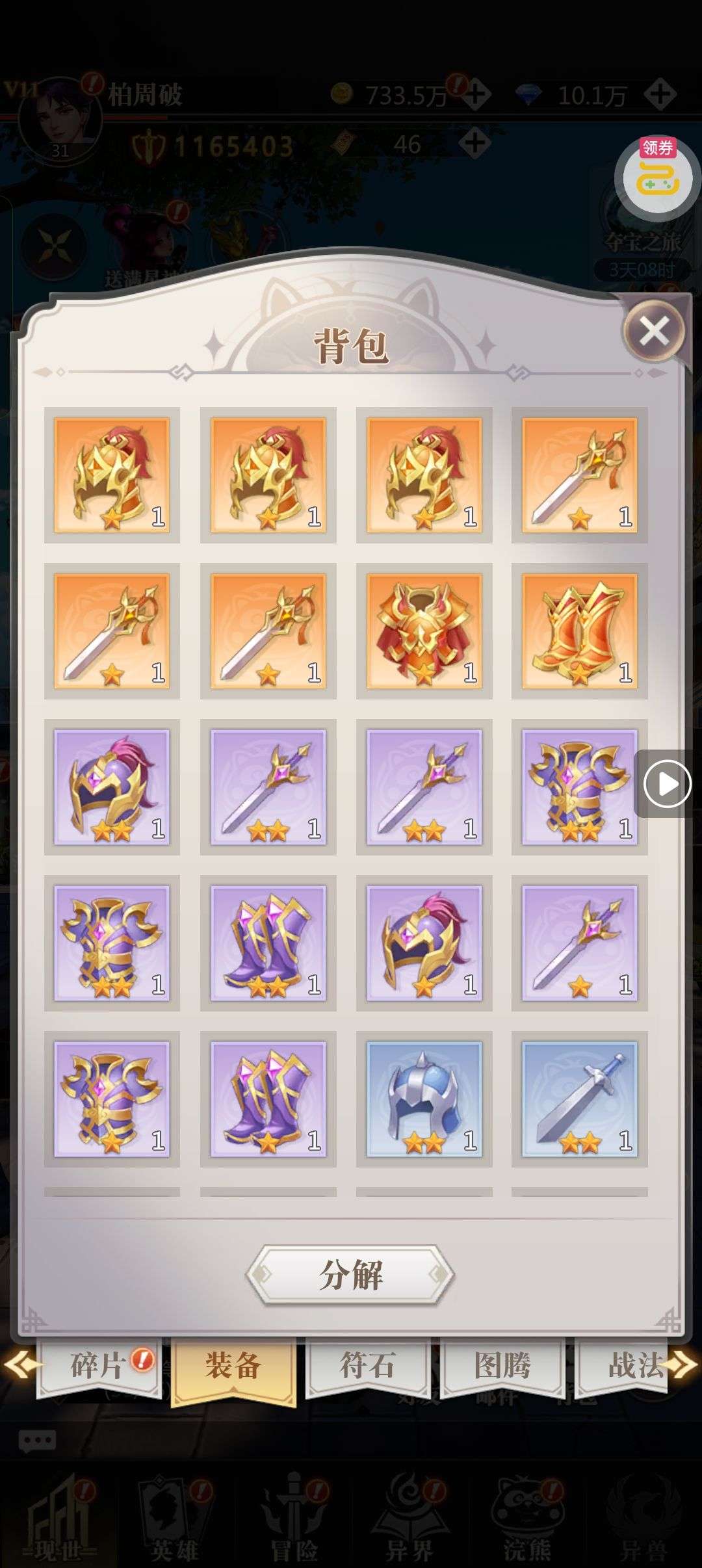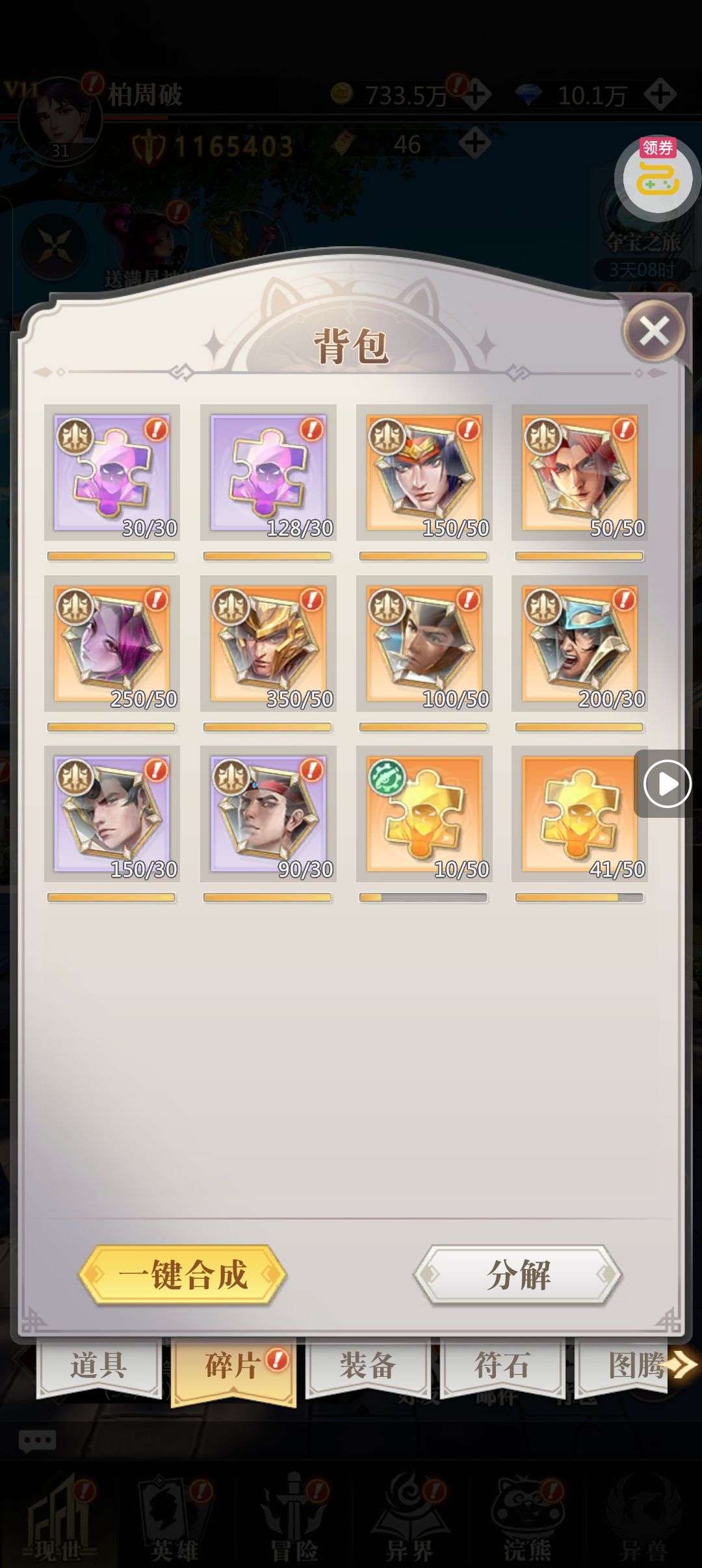 夺宝券*1、比武令*1、5星随机将魂*10(每个账号限领一次)
