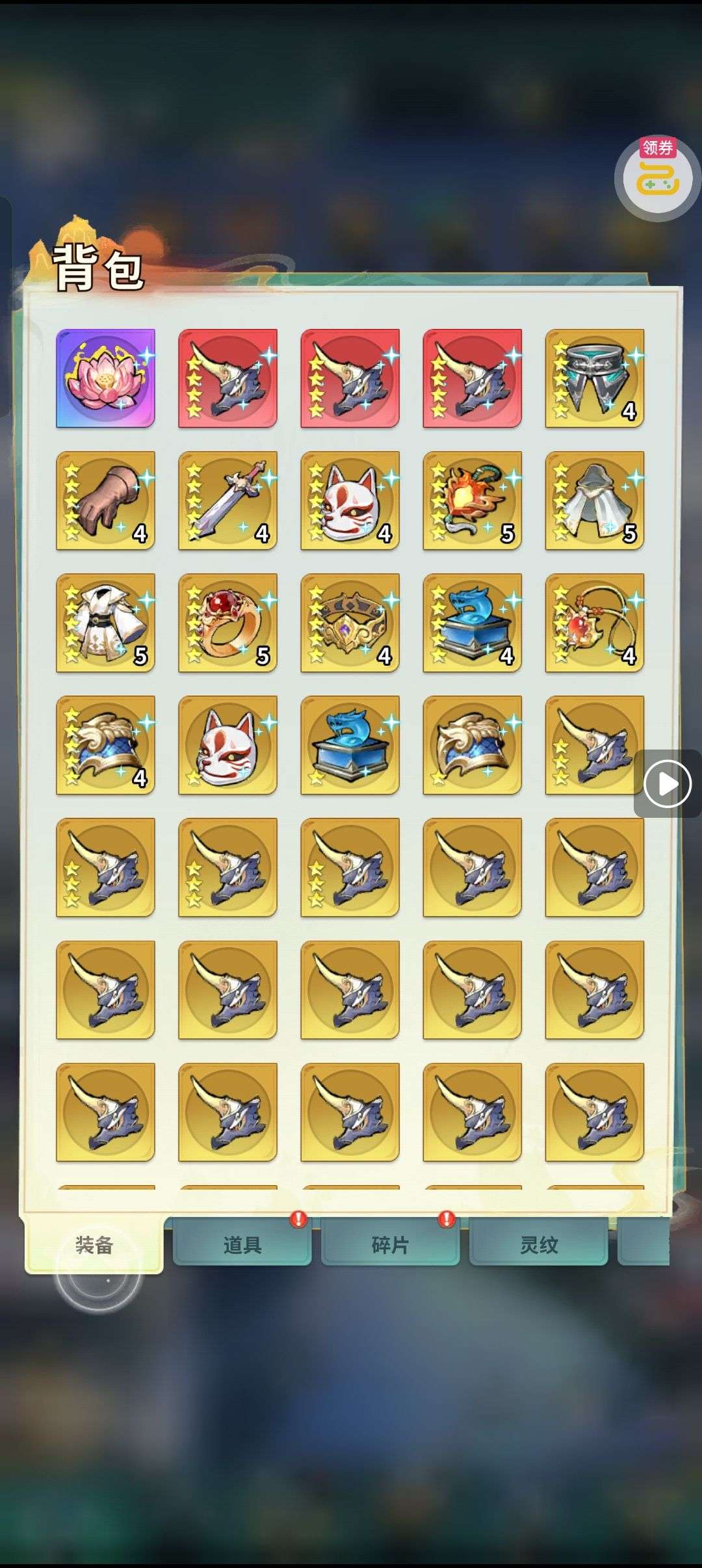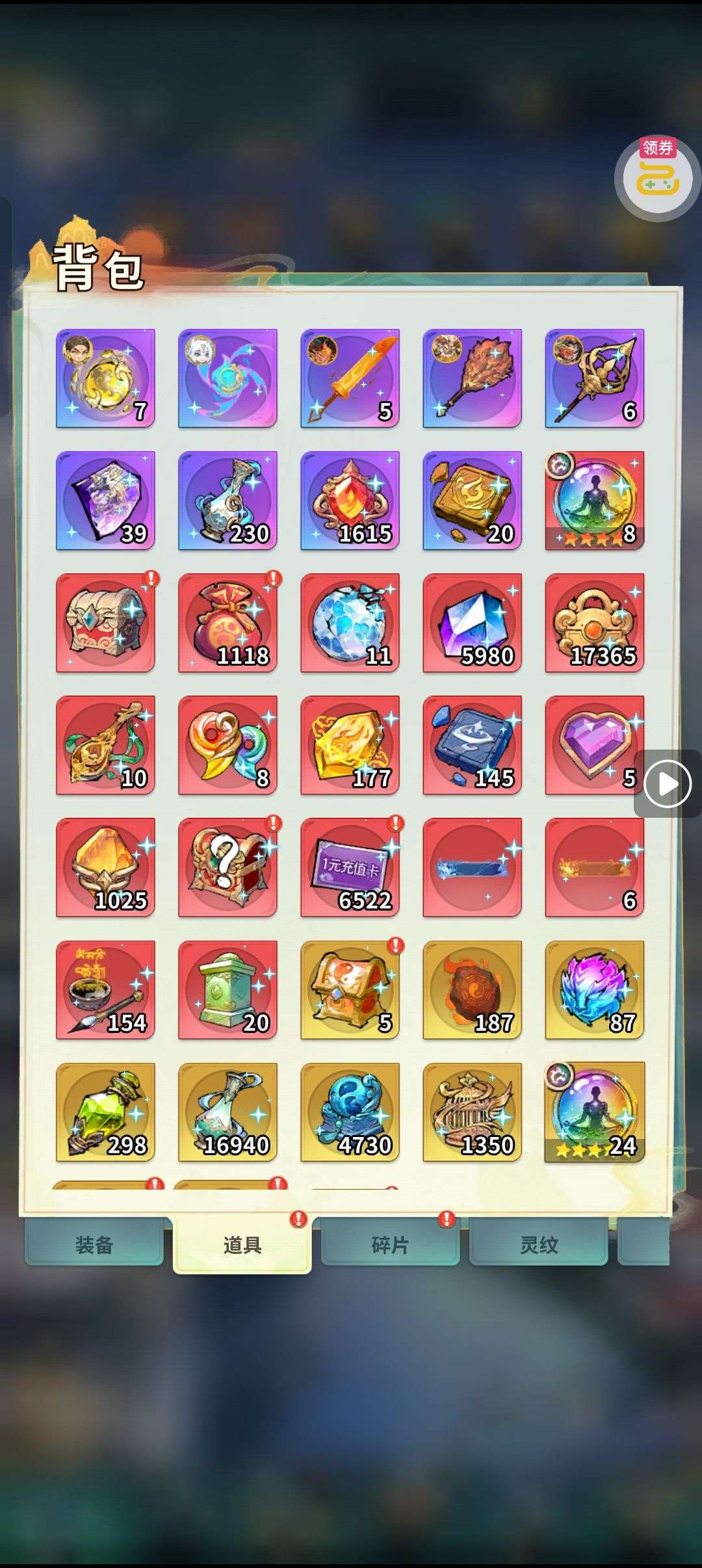 夺宝券*1、比武令*1、5星随机将魂*10(每个账号限领一次)