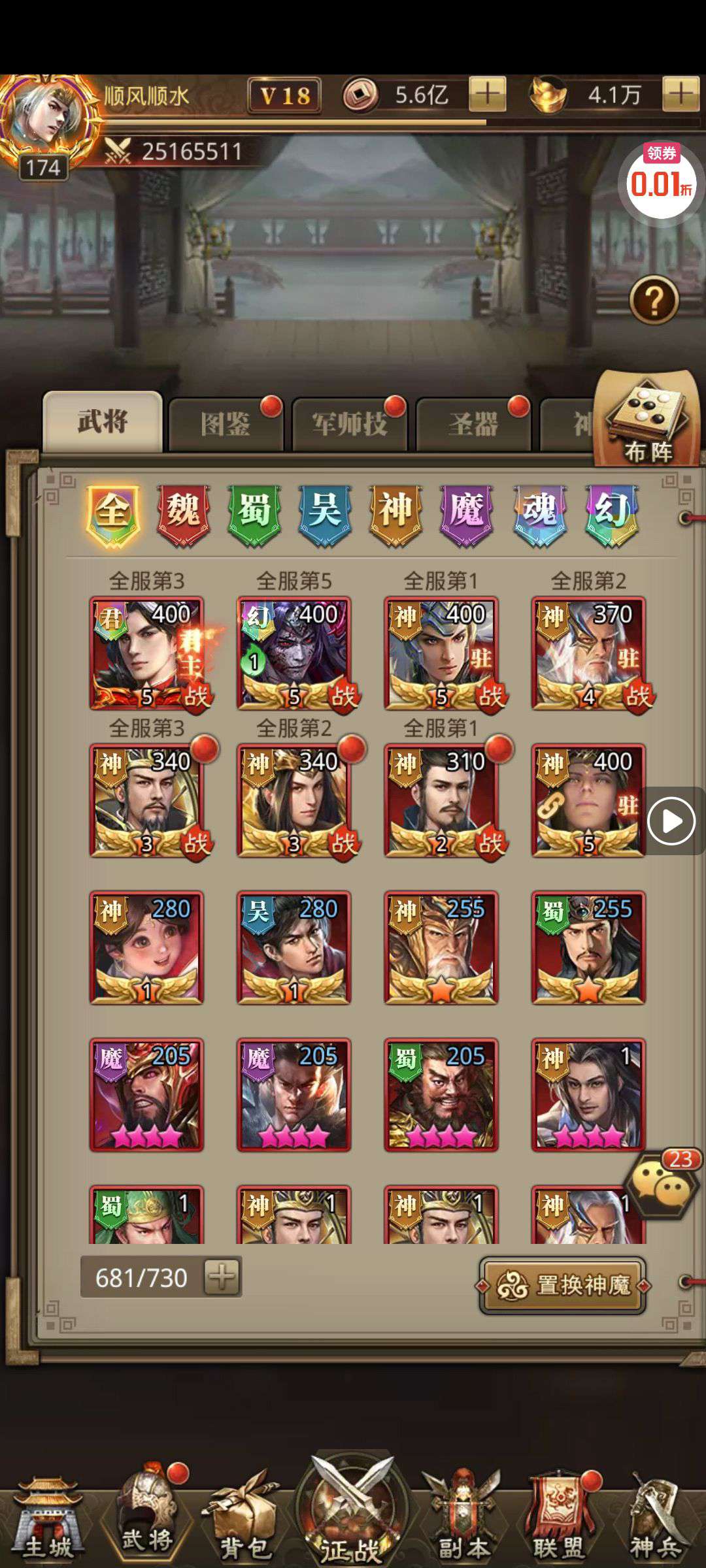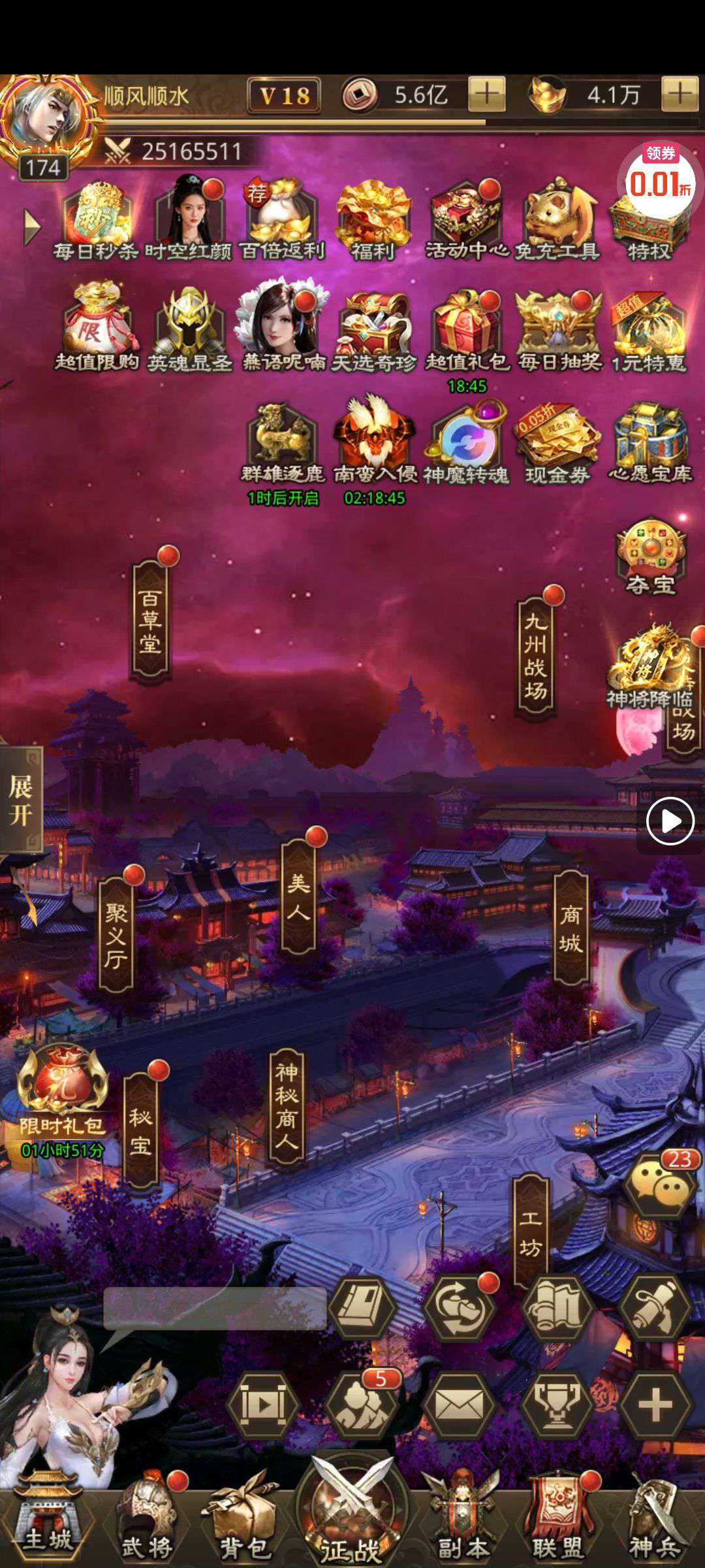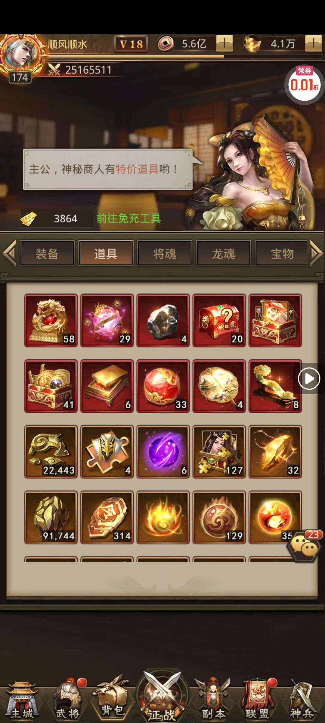 夺宝券*1、比武令*1、5星随机将魂*10(每个账号限领一次)