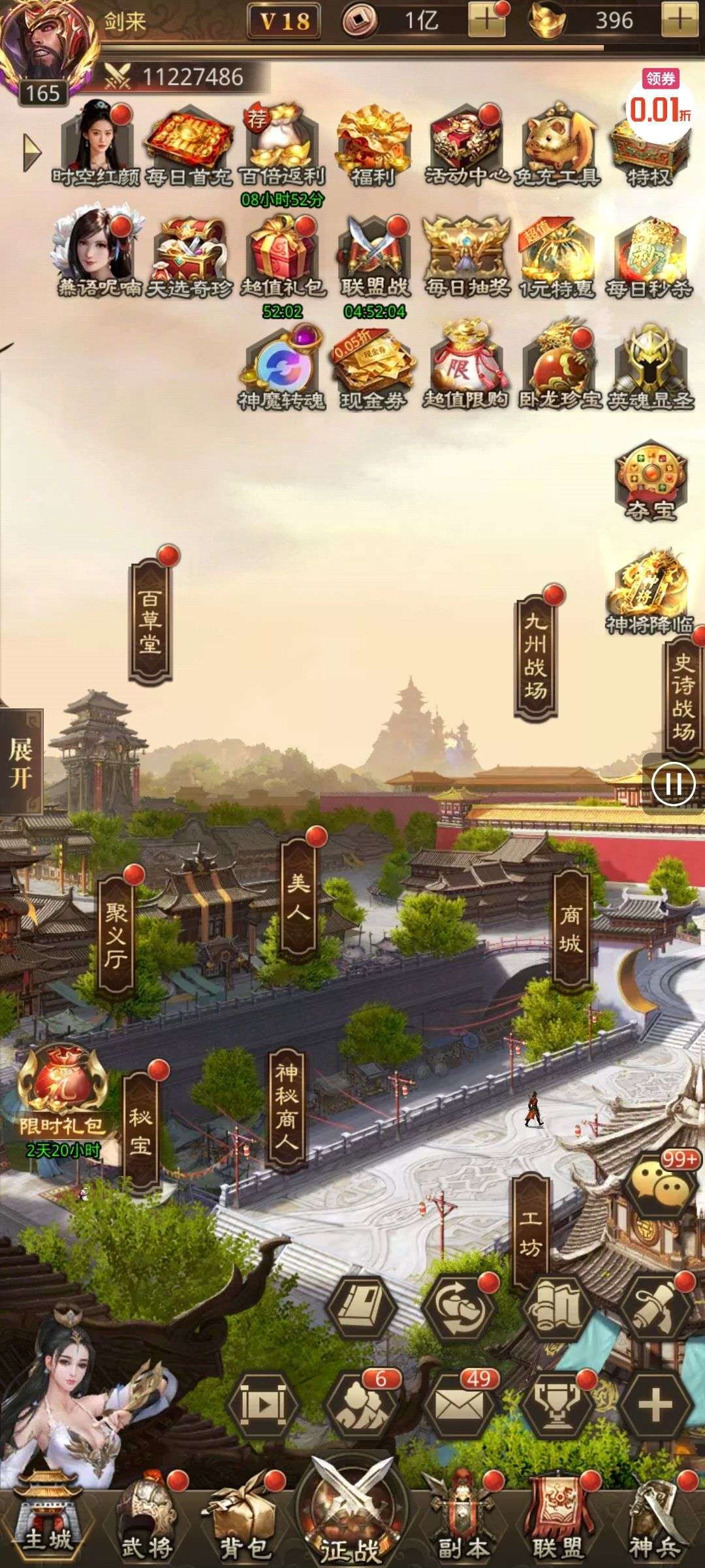 《王者激战》0.1折手游签到送万元代金券,无门槛,任意买买买!