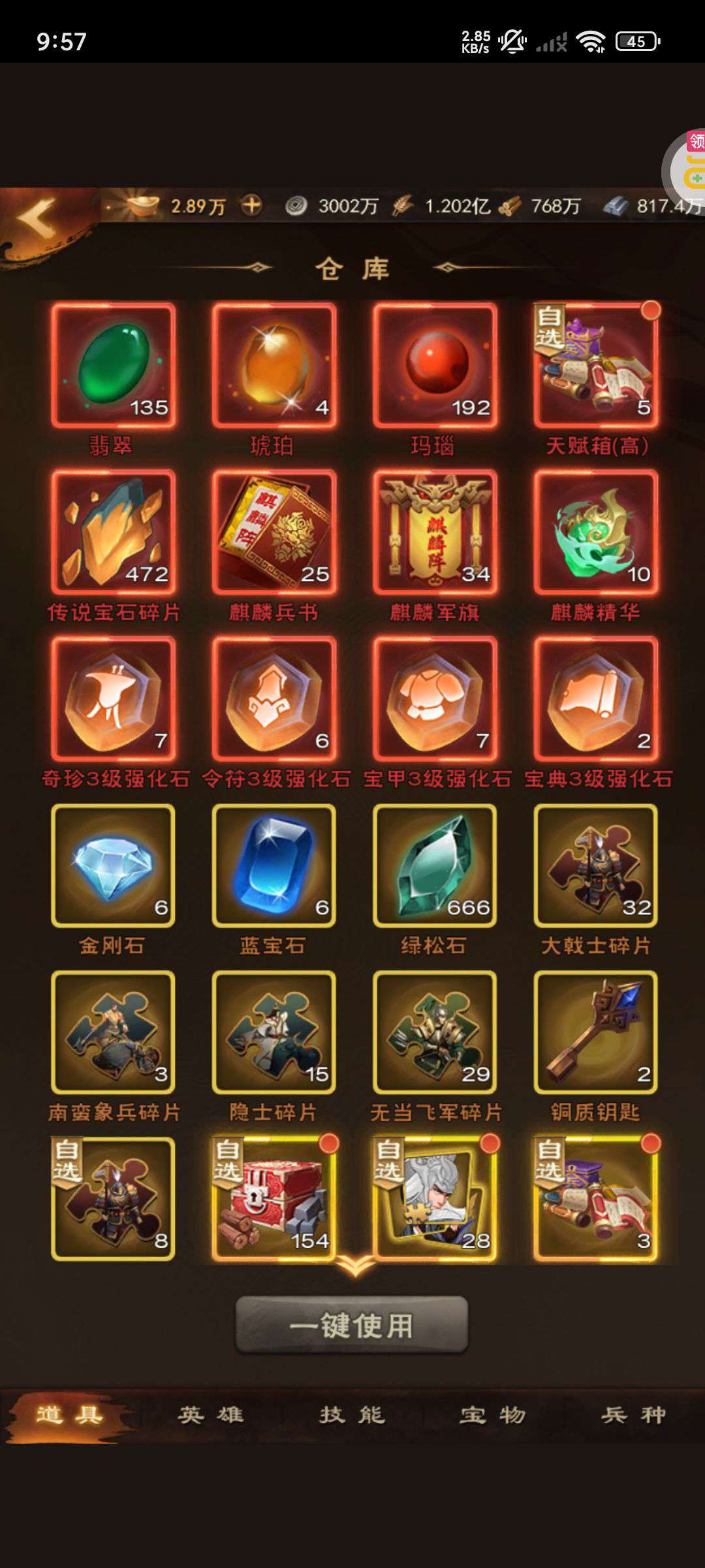 夺宝券*1、比武令*1、5星随机将魂*10(每个账号限领一次)