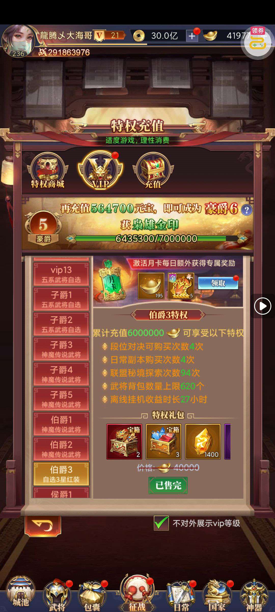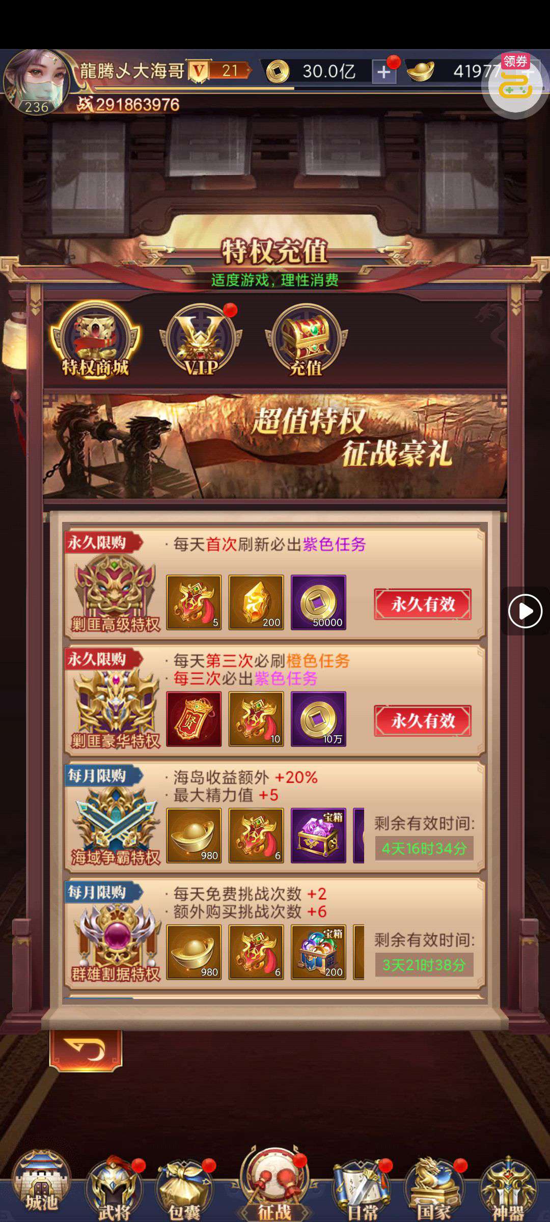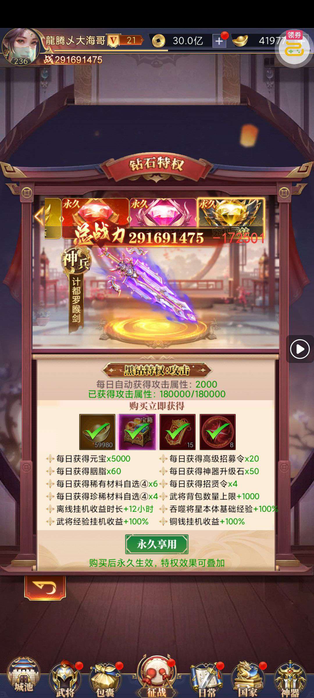 钻石特权,至尊宝库特权已开