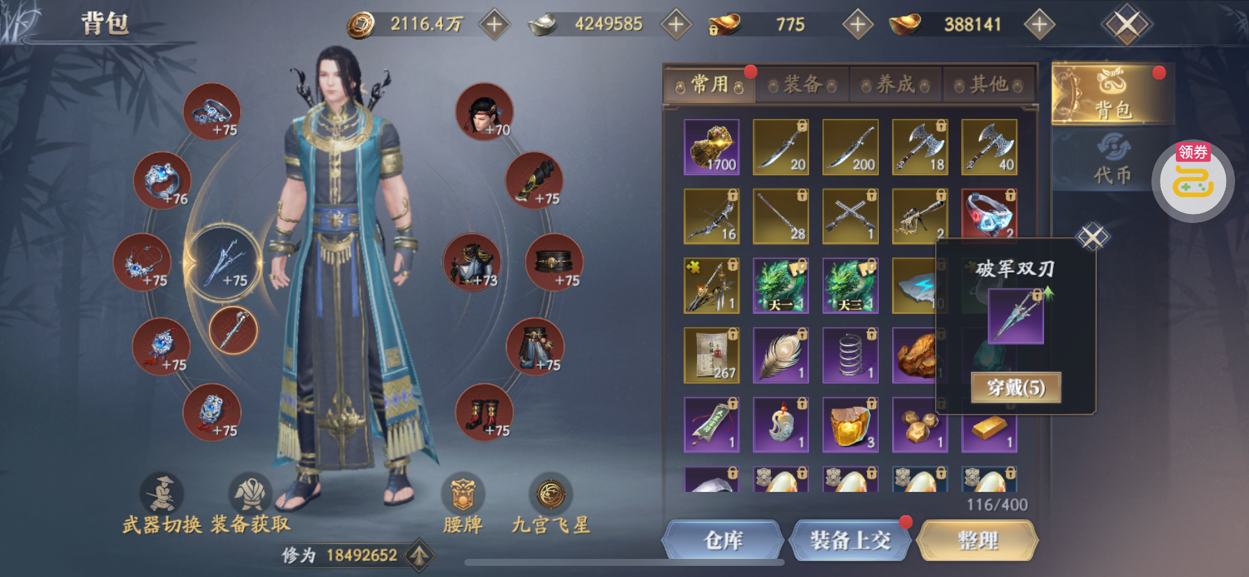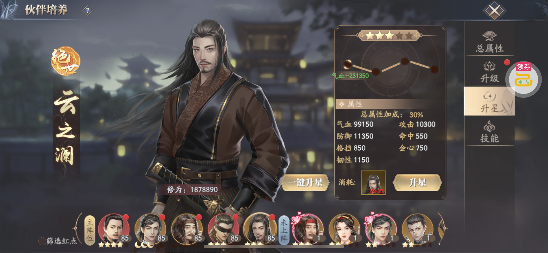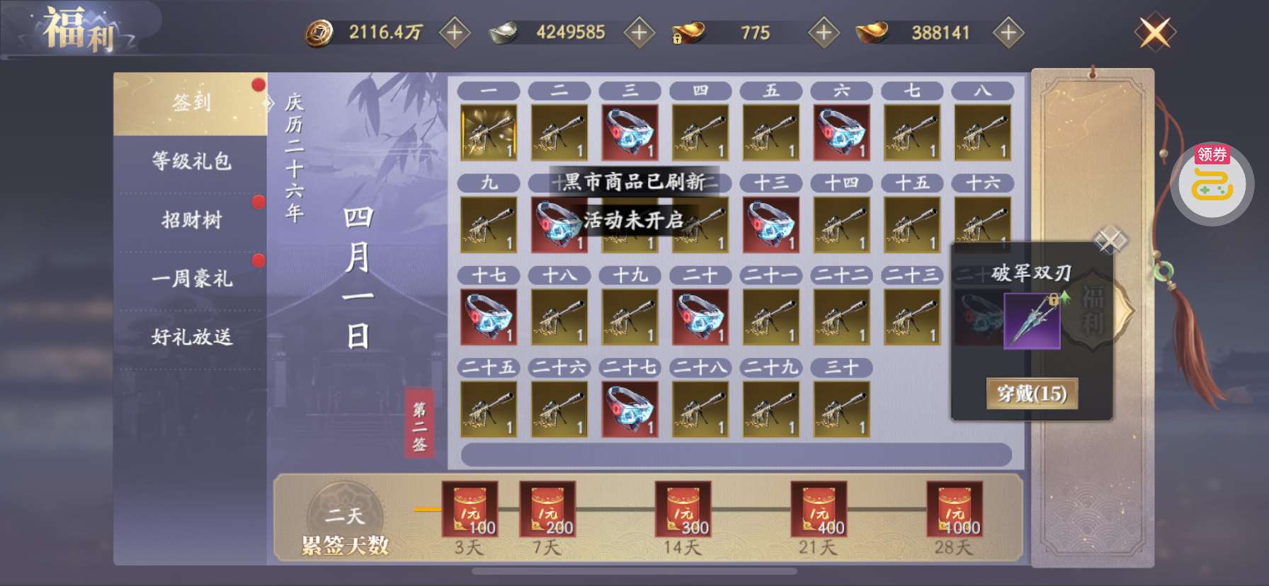 夺宝券*1、比武令*1、5星随机将魂*10(每个账号限领一次)