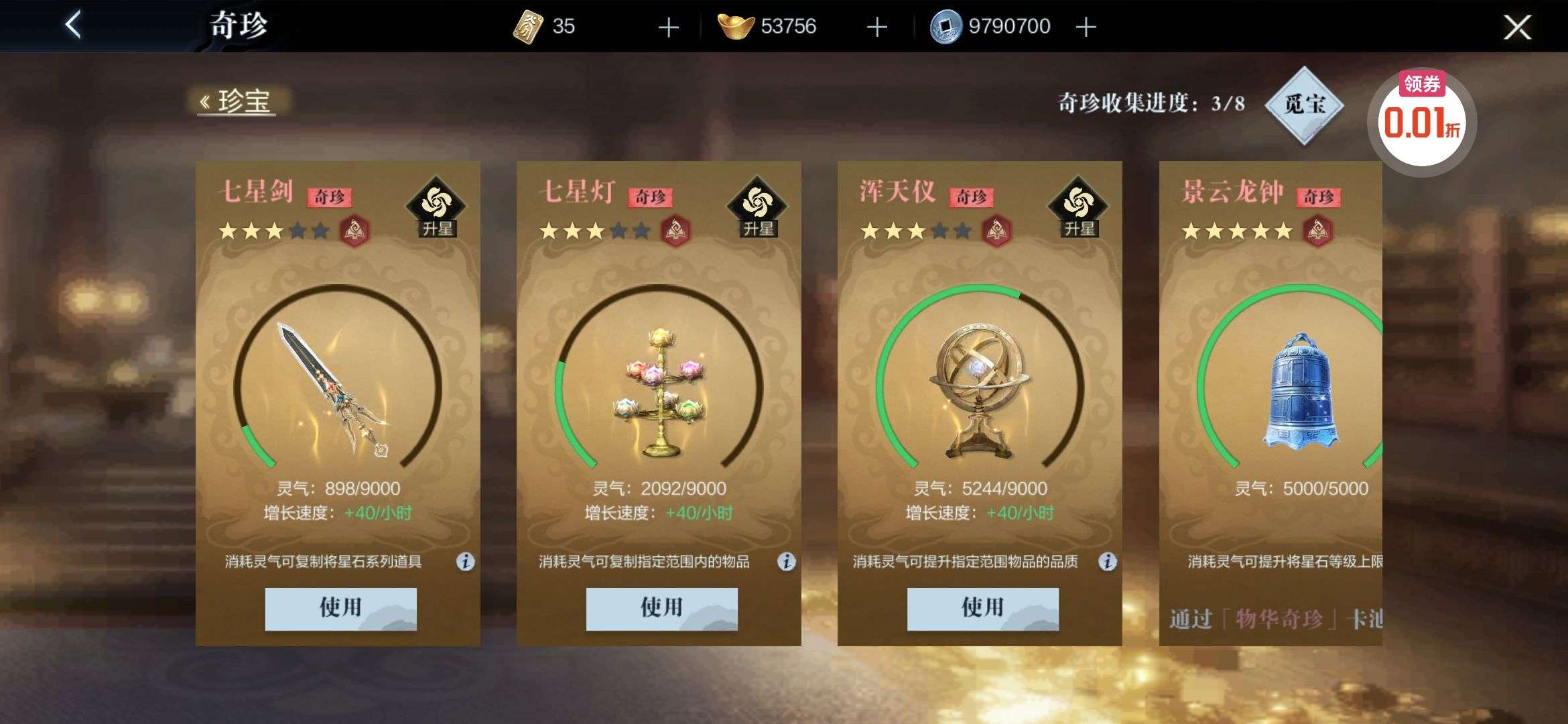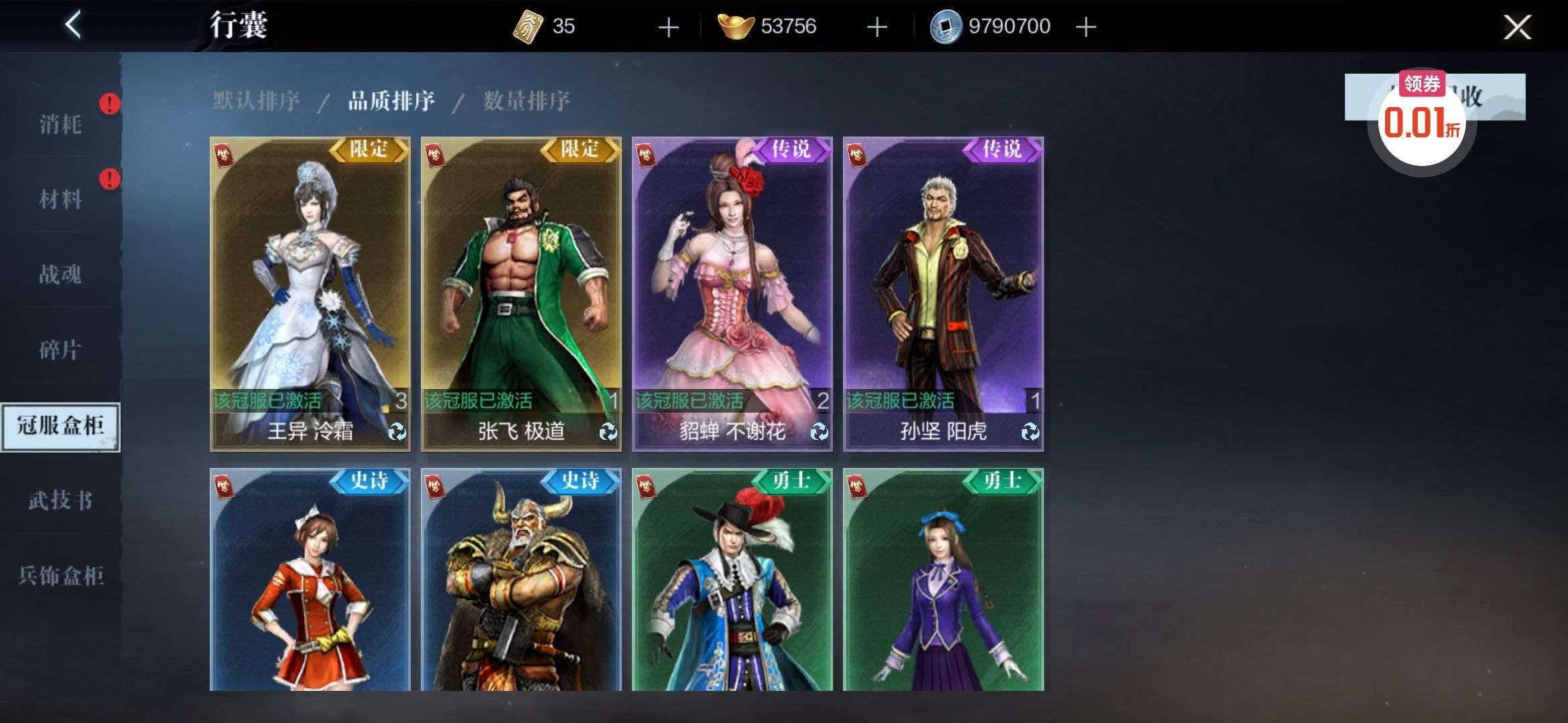 夺宝券*1、比武令*1、5星随机将魂*10(每个账号限领一次)