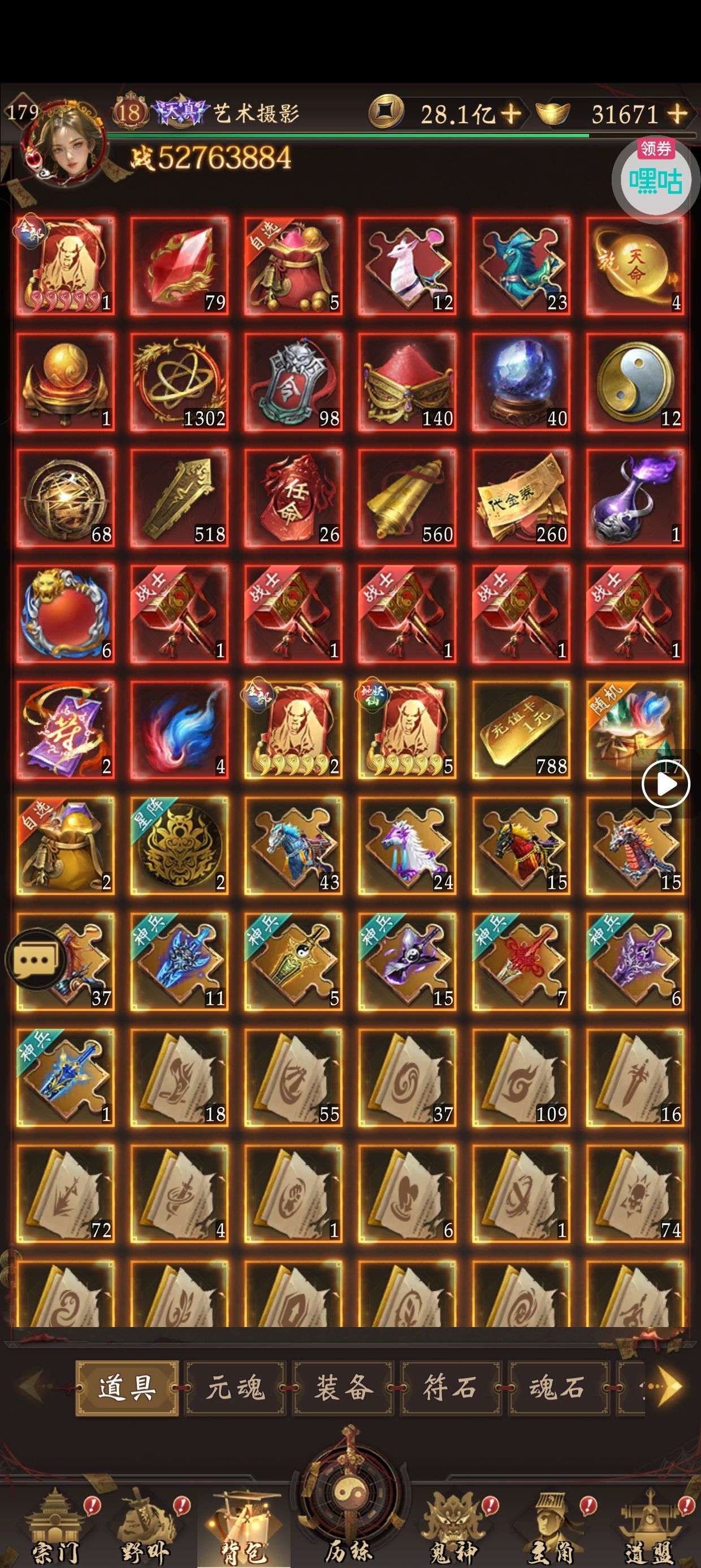 夺宝券*1、比武令*1、5星随机将魂*10(每个账号限领一次)
