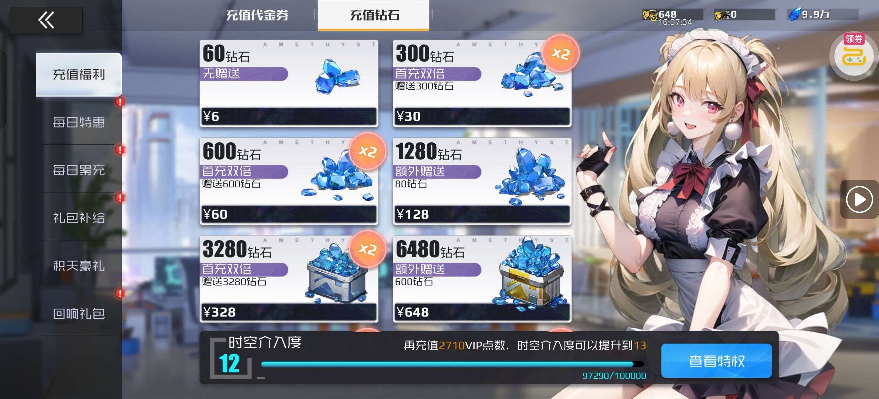 角色齐全,装备,材料,钻石,抵扣券,应有尽有,极品小号。因为没时间所以出售!