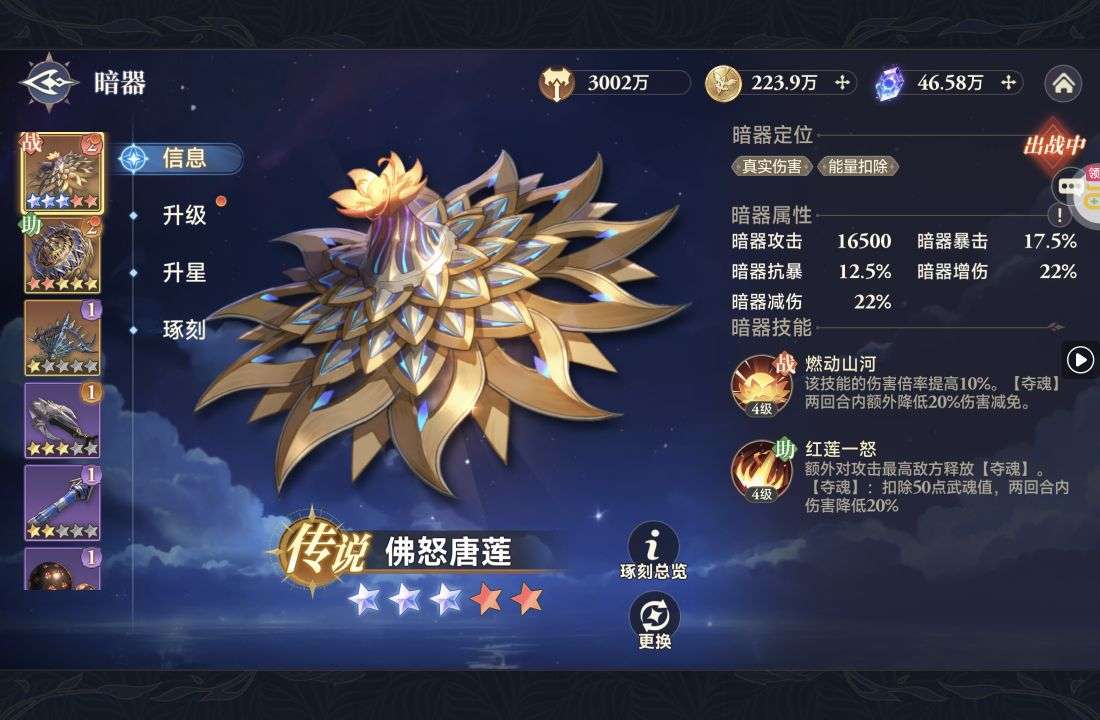 上阵暗器专属词条全有,硬件:魂卡、魂骨、外敷拉的算可以了,符石拉满,魂导器里神念穿透和任性也拉满了,目前跨区实战没对手,一队三队没有对手。想要的可以接手