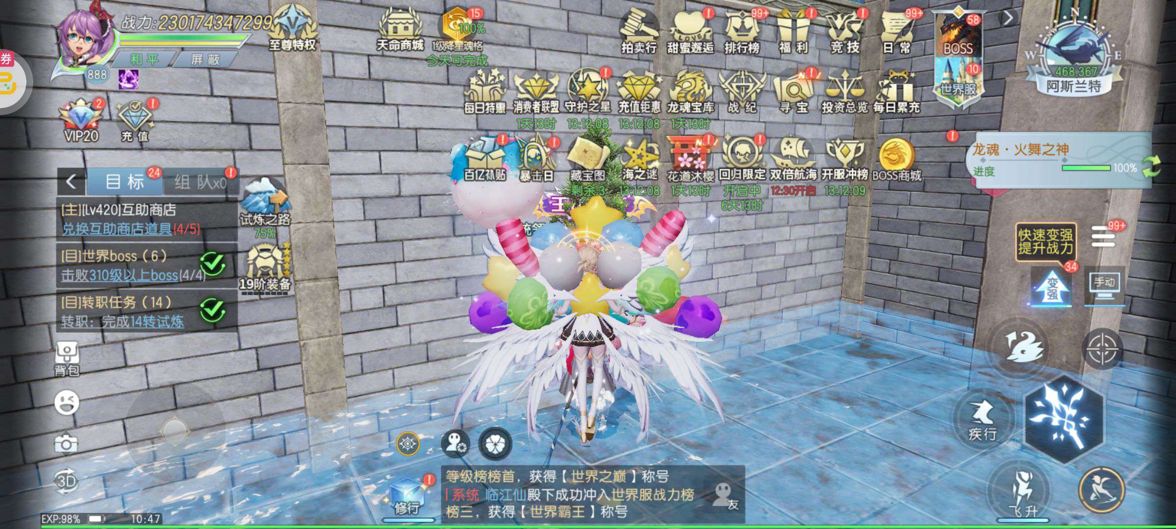 人物角色1200级 常年位居服务器榜一 满级全属性棱彩装备觉醒,满级强化。 所有服装和坐骑全解锁。