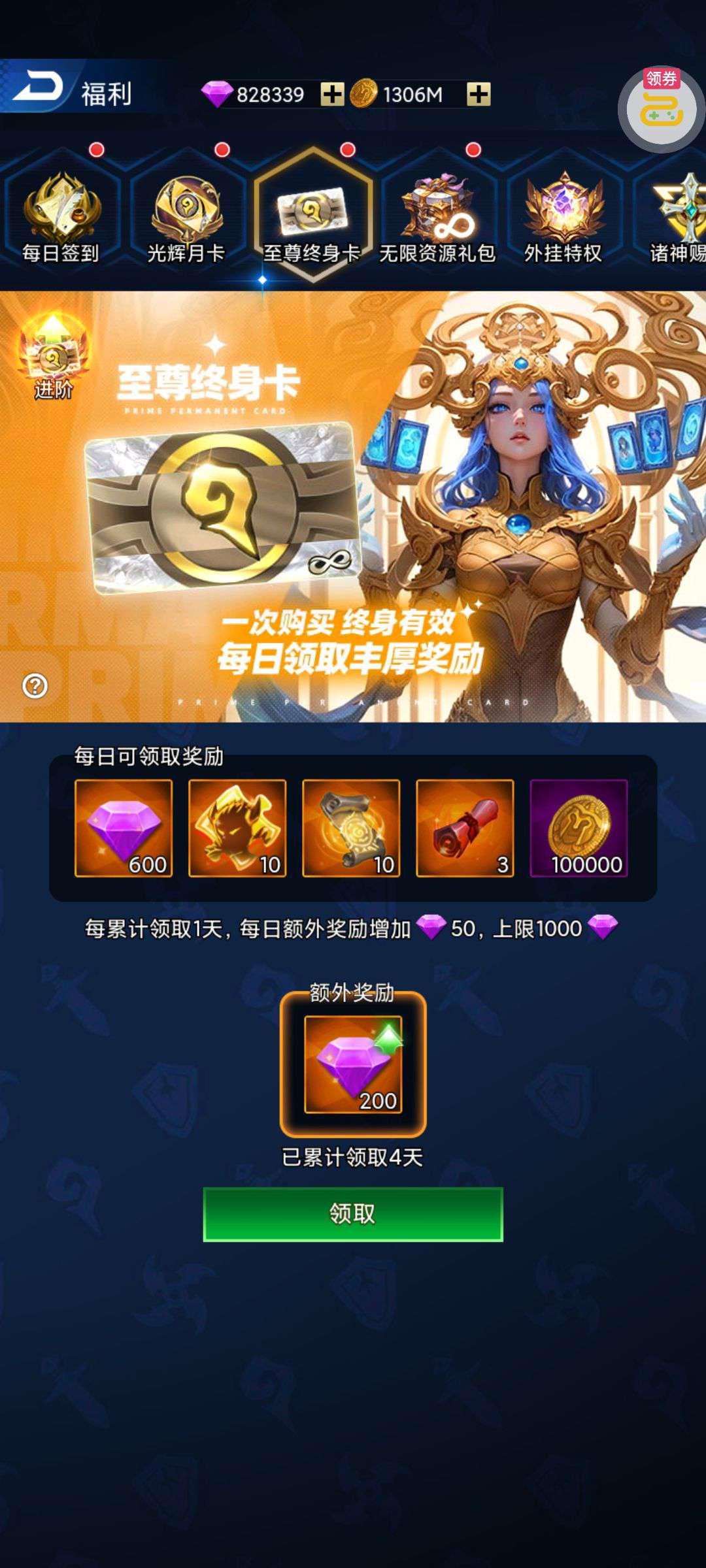 强化药剂*200、钻石招募币*20、金币*50W(每个账号限领一次)