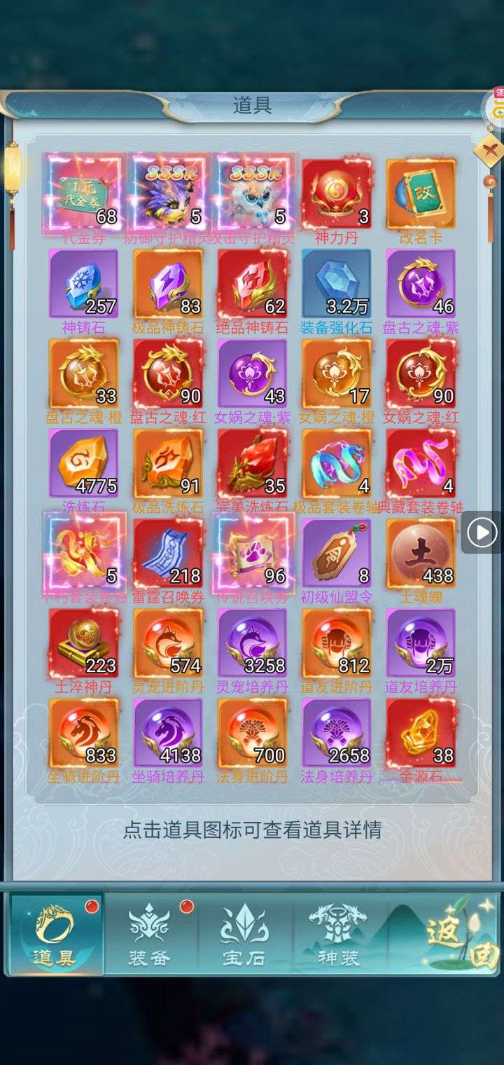 30张648真充卡豪礼、侠客灵丹*10、侠客神丹*10、侠客金丹*1、专属挑战令*1(每个账号限领一次)