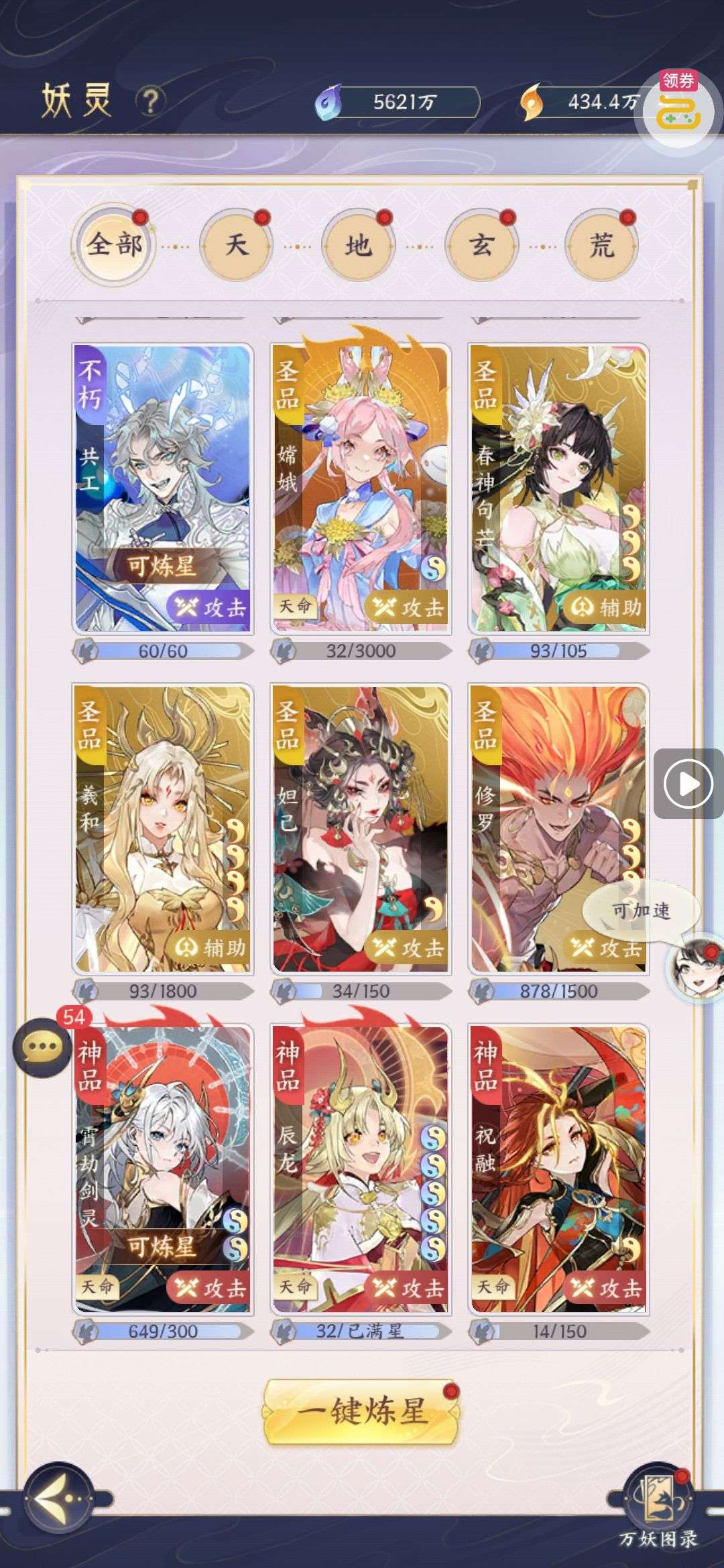 满星混沌,七星杨戬,6星女娲,5星凤凰