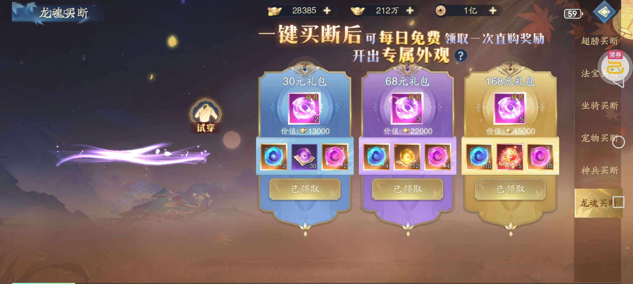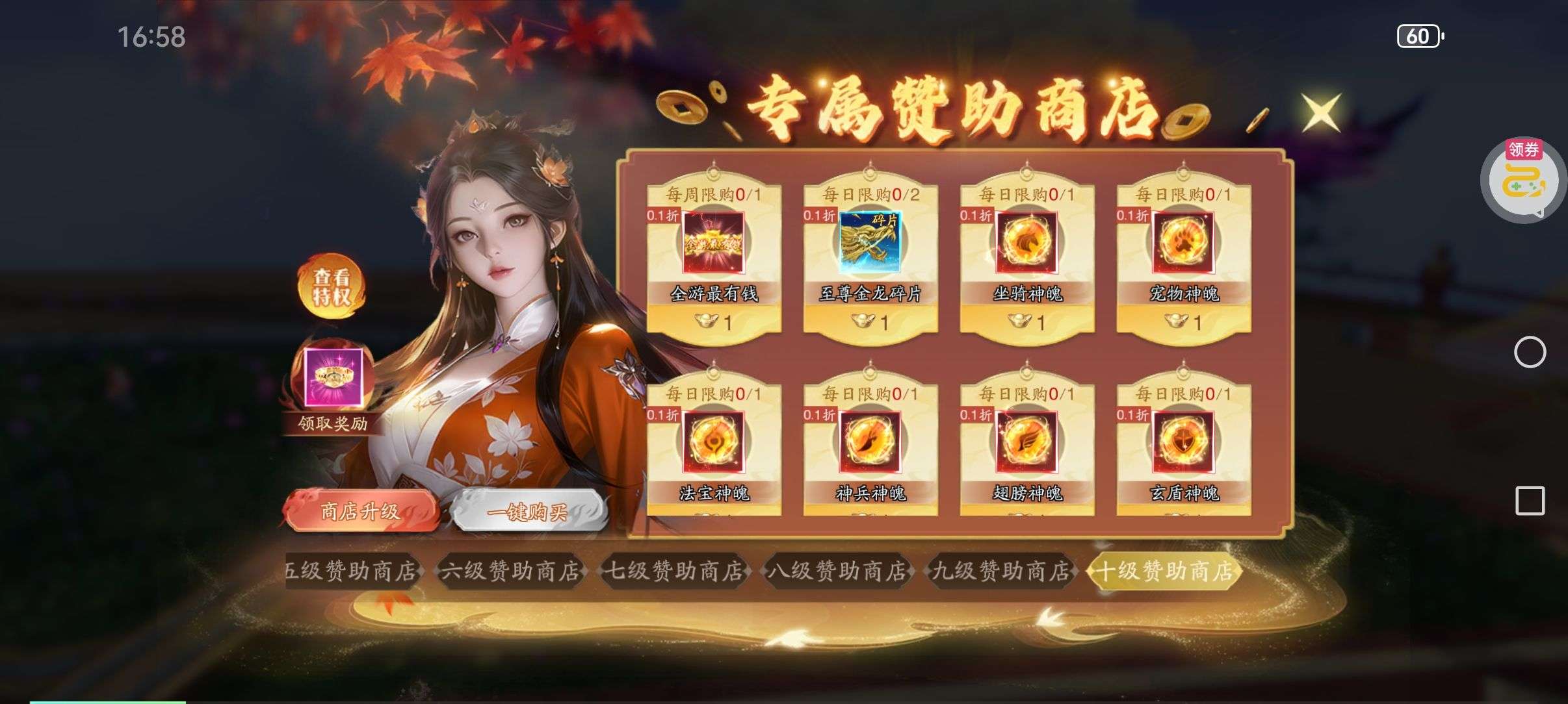 夺宝券*1、比武令*1、5星随机将魂*10(每个账号限领一次)