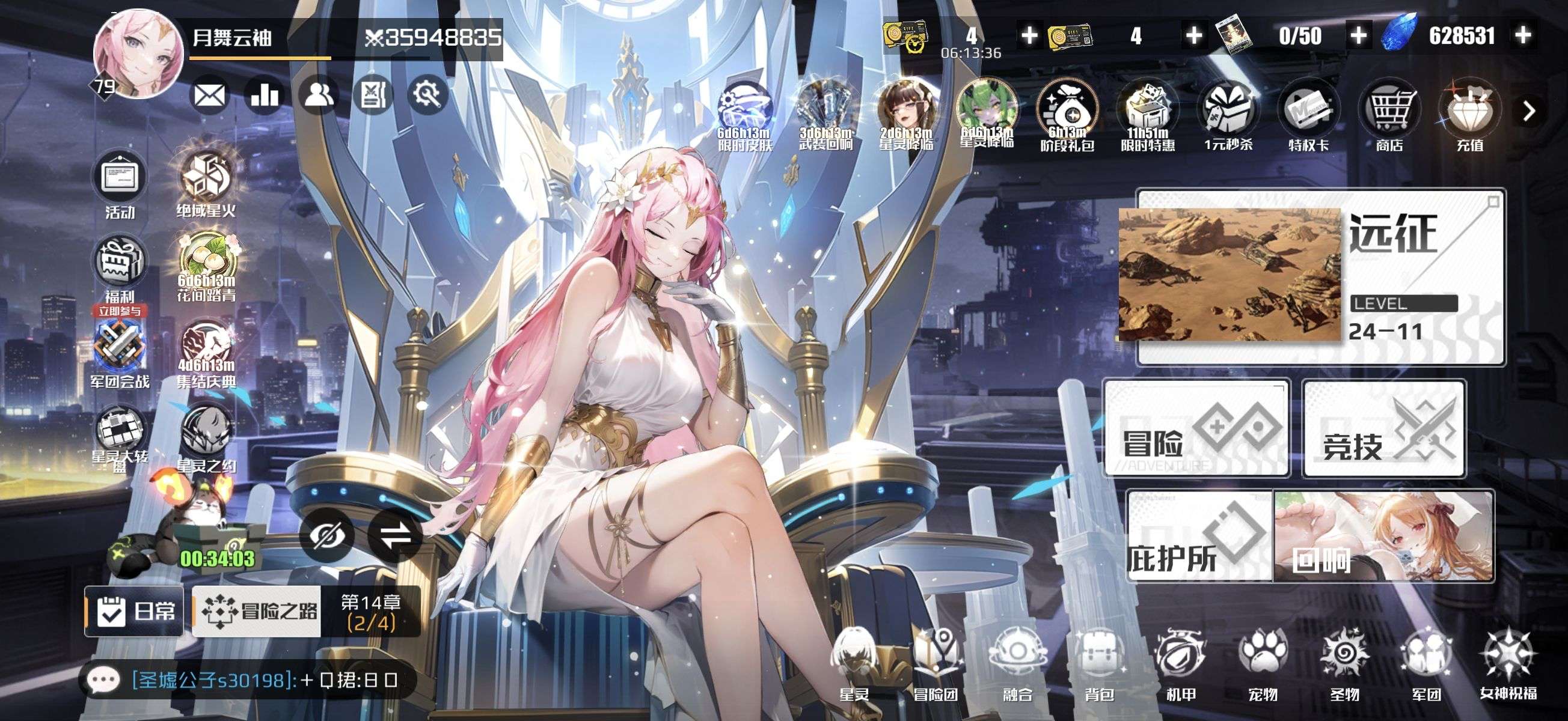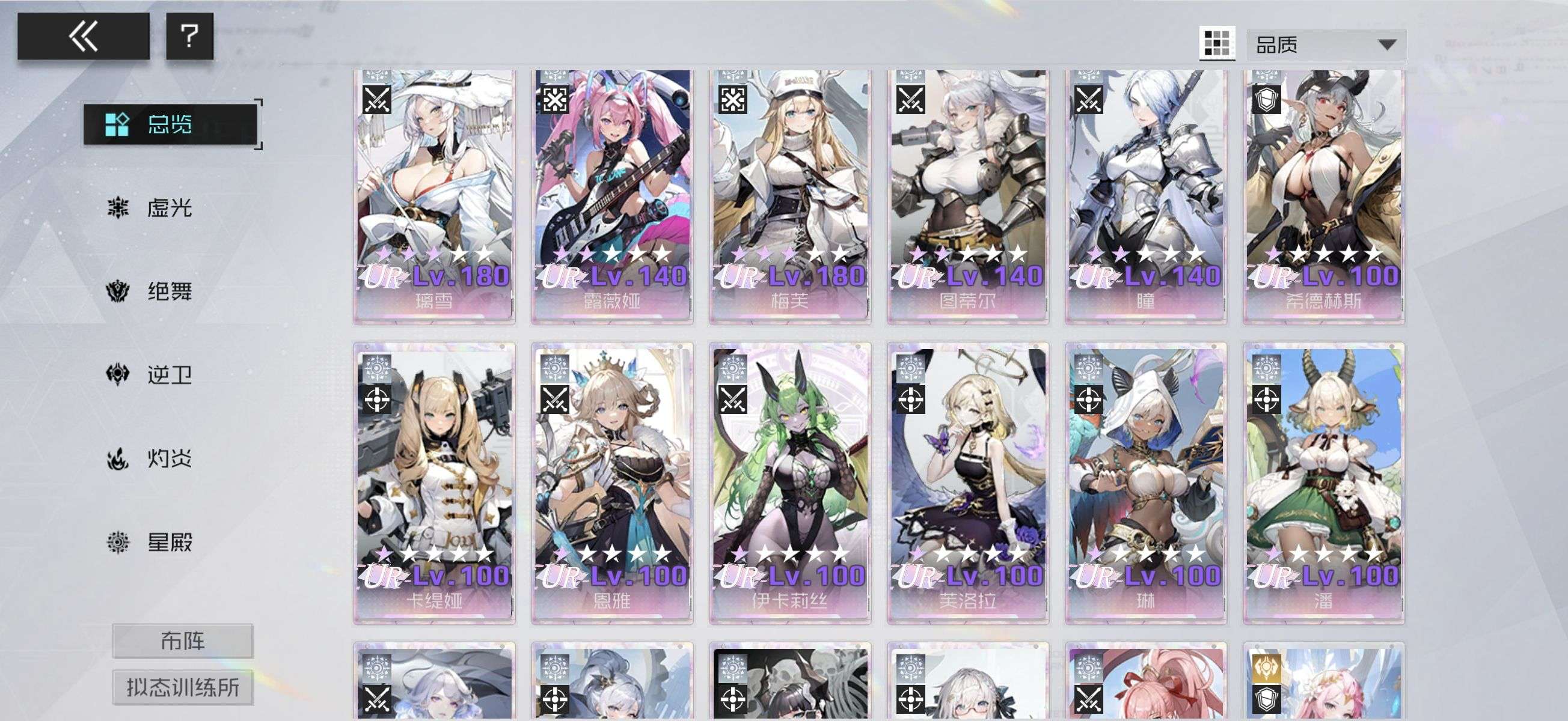 雅典娜队,有买8皮肤,除部分UR其他角色都收集了,UR券还有370张,其他券各几百张,各类月卡都有剩余。