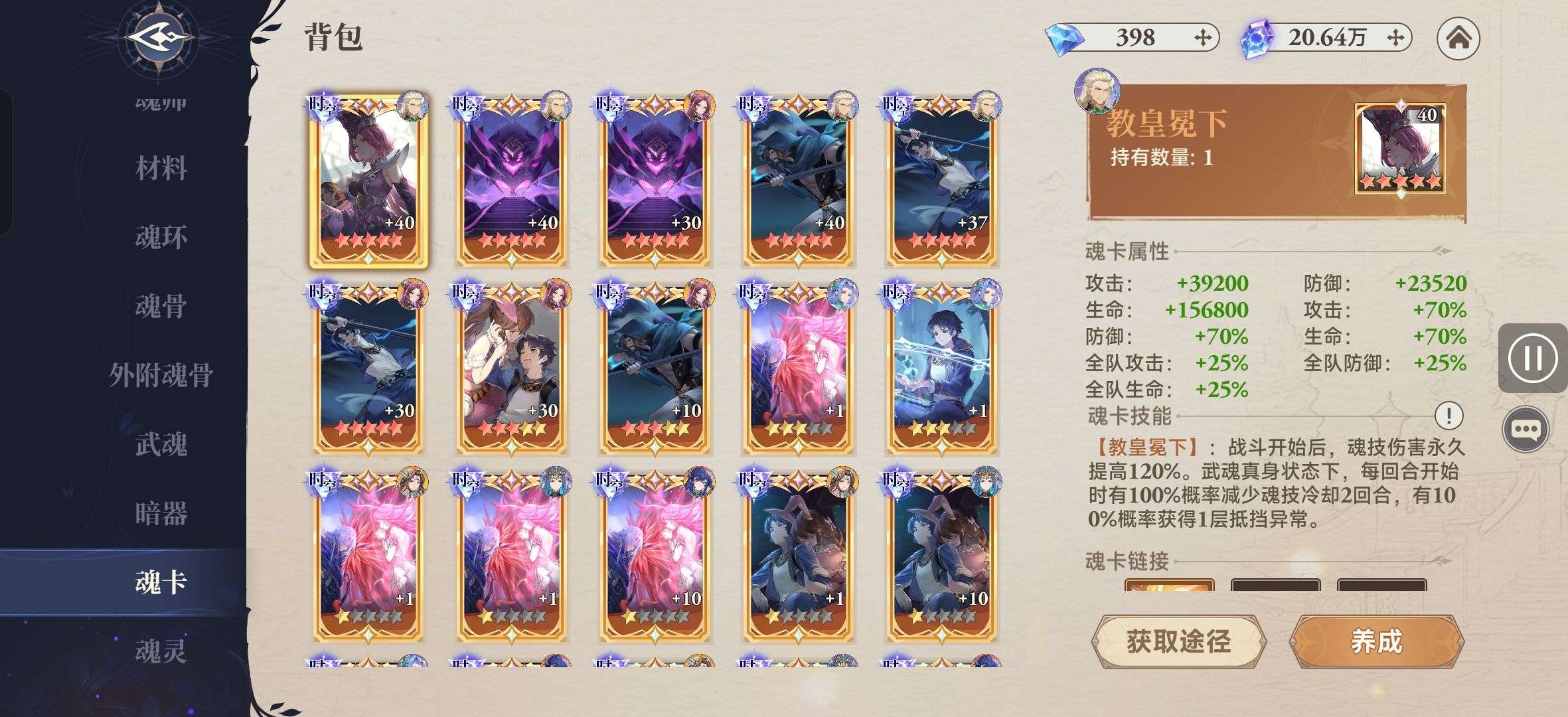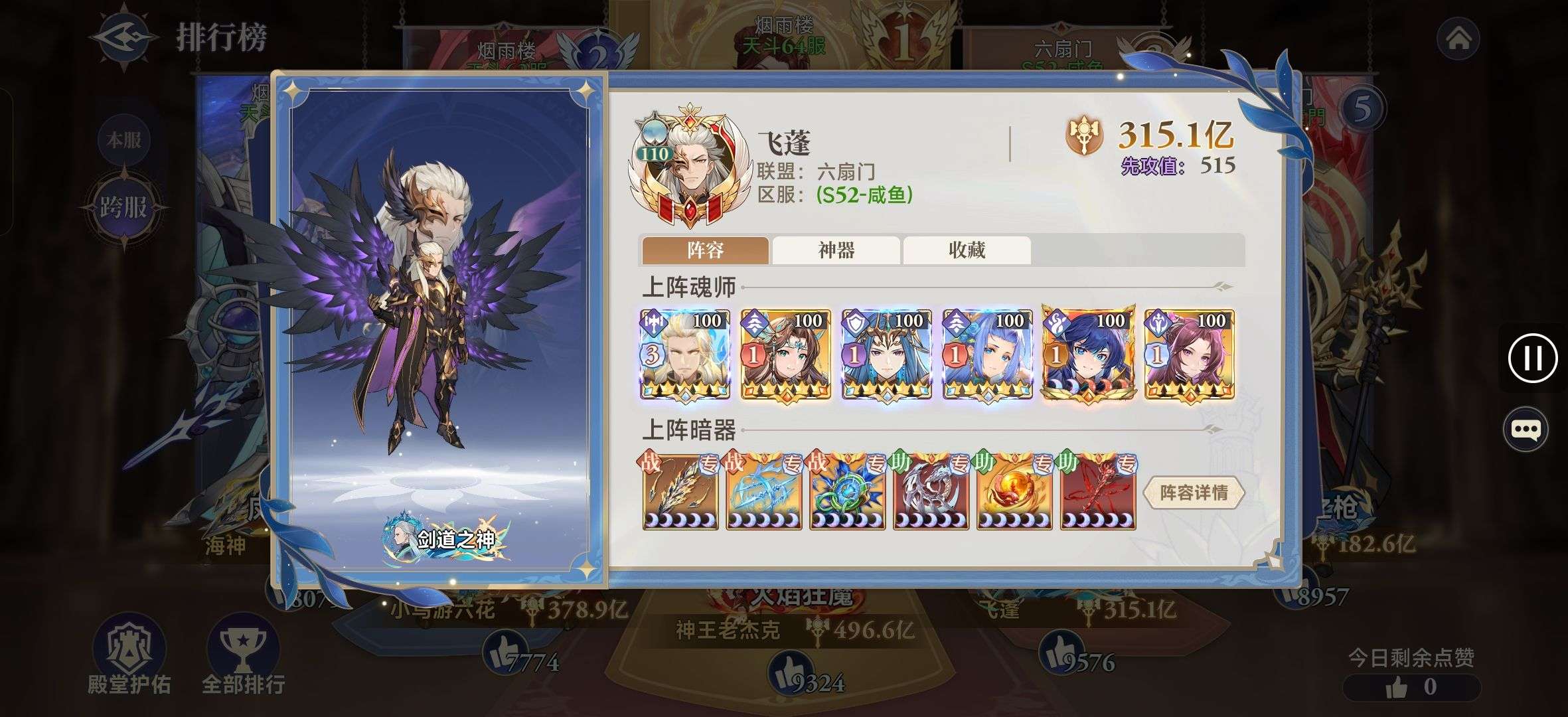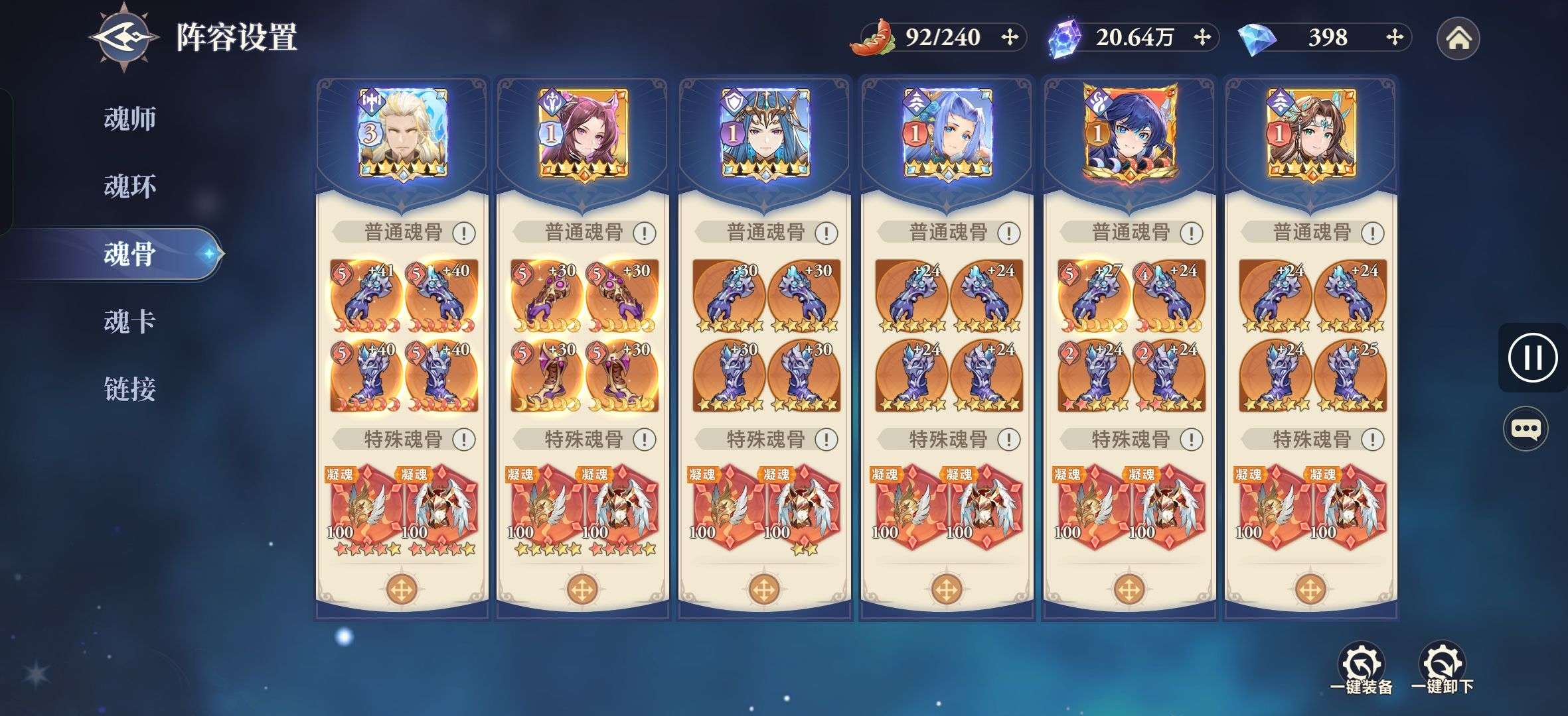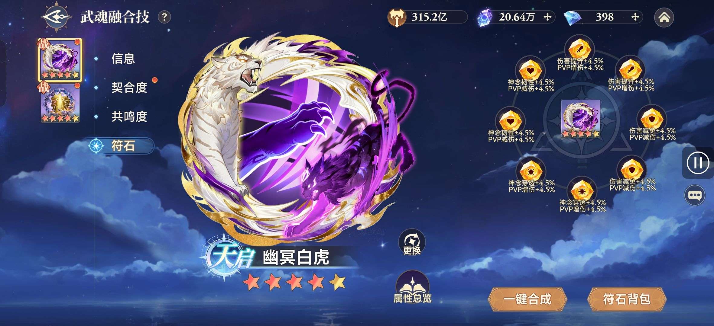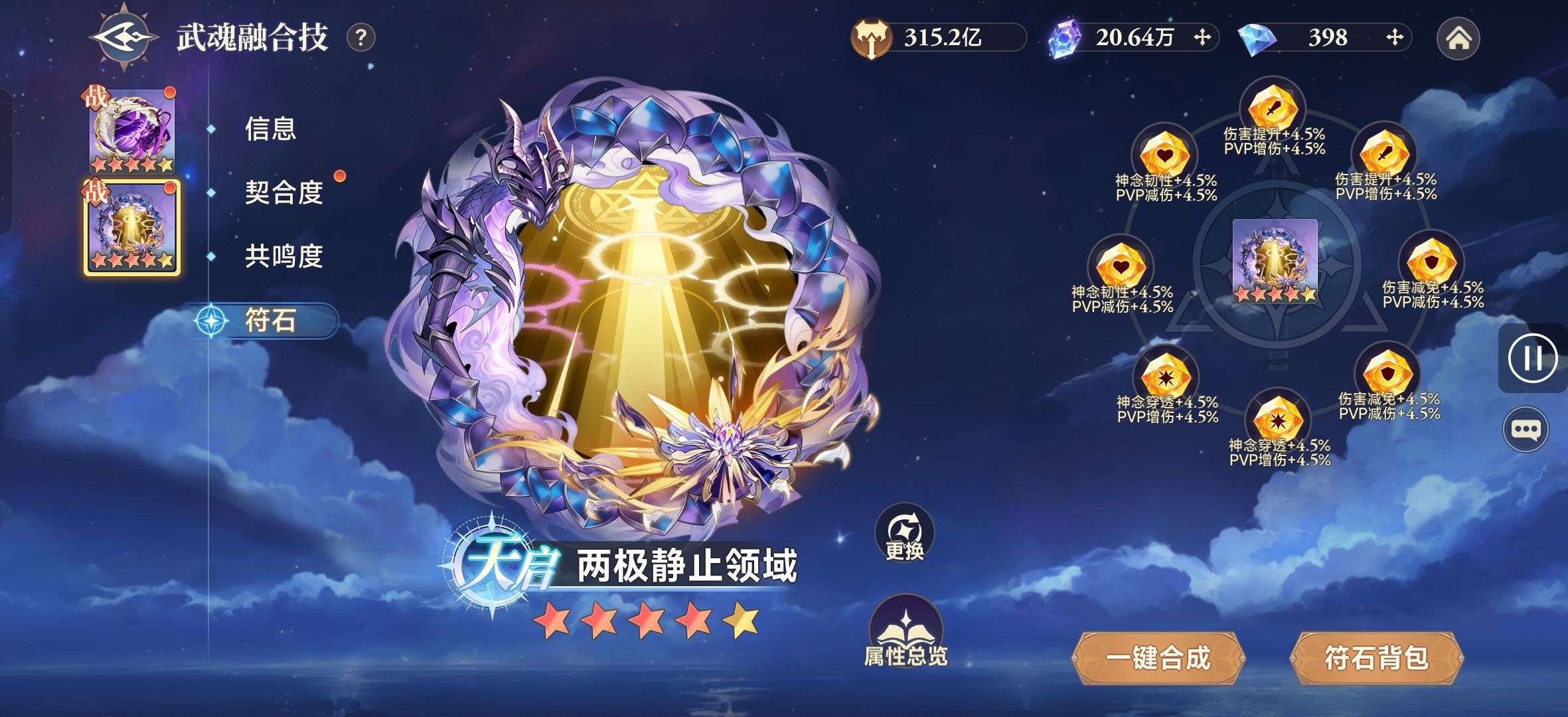 上阵暗器专属词条全有,硬件:魂卡、魂骨、外敷拉的算可以了,符石拉满,魂导器里神念穿透和任性也拉满了,目前跨区实战没对手,一队三队没有对手。想要的可以接手