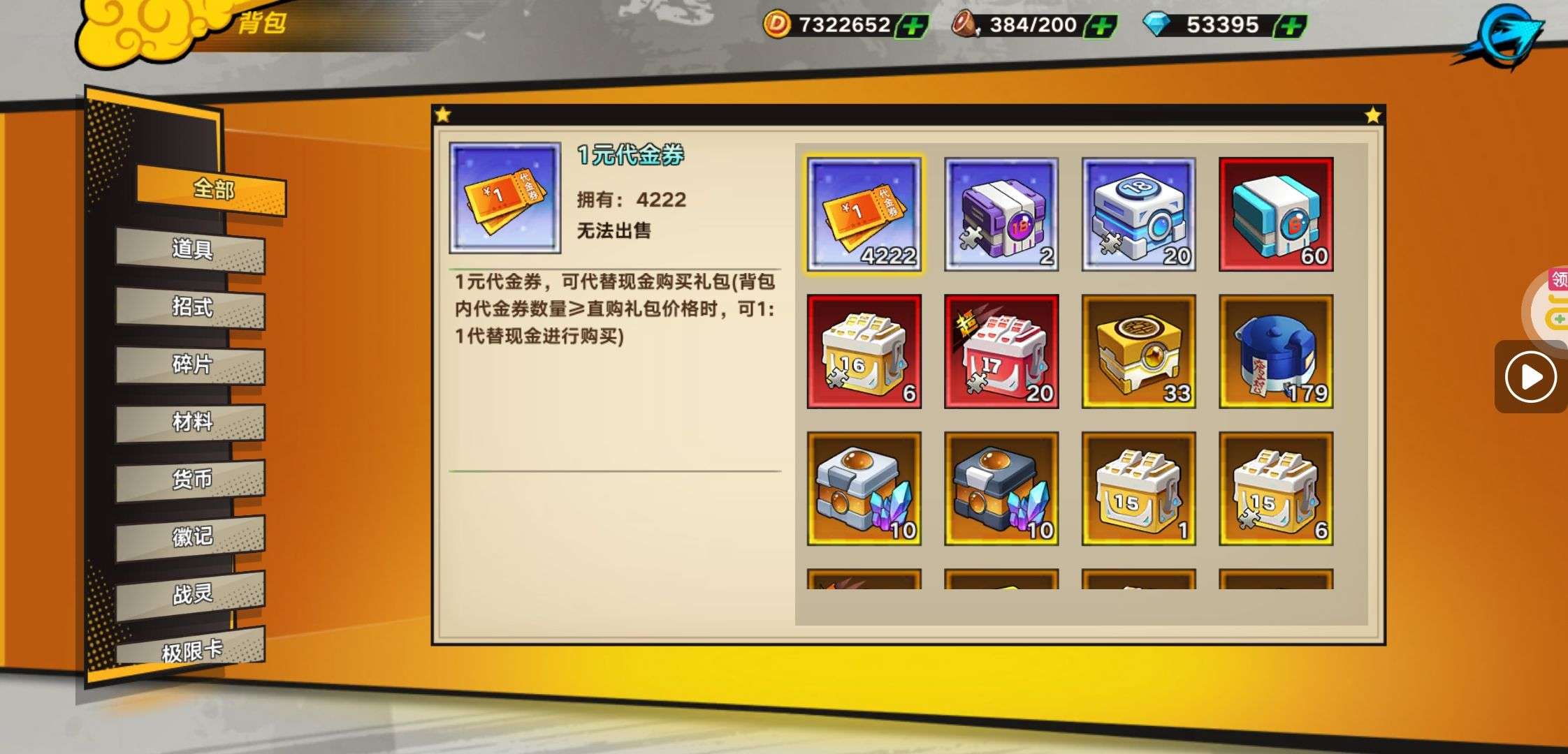 五阵营输出自选包*1、豪华材料自选礼包*2、高级忍法帖*20(每个账号限领一次)
