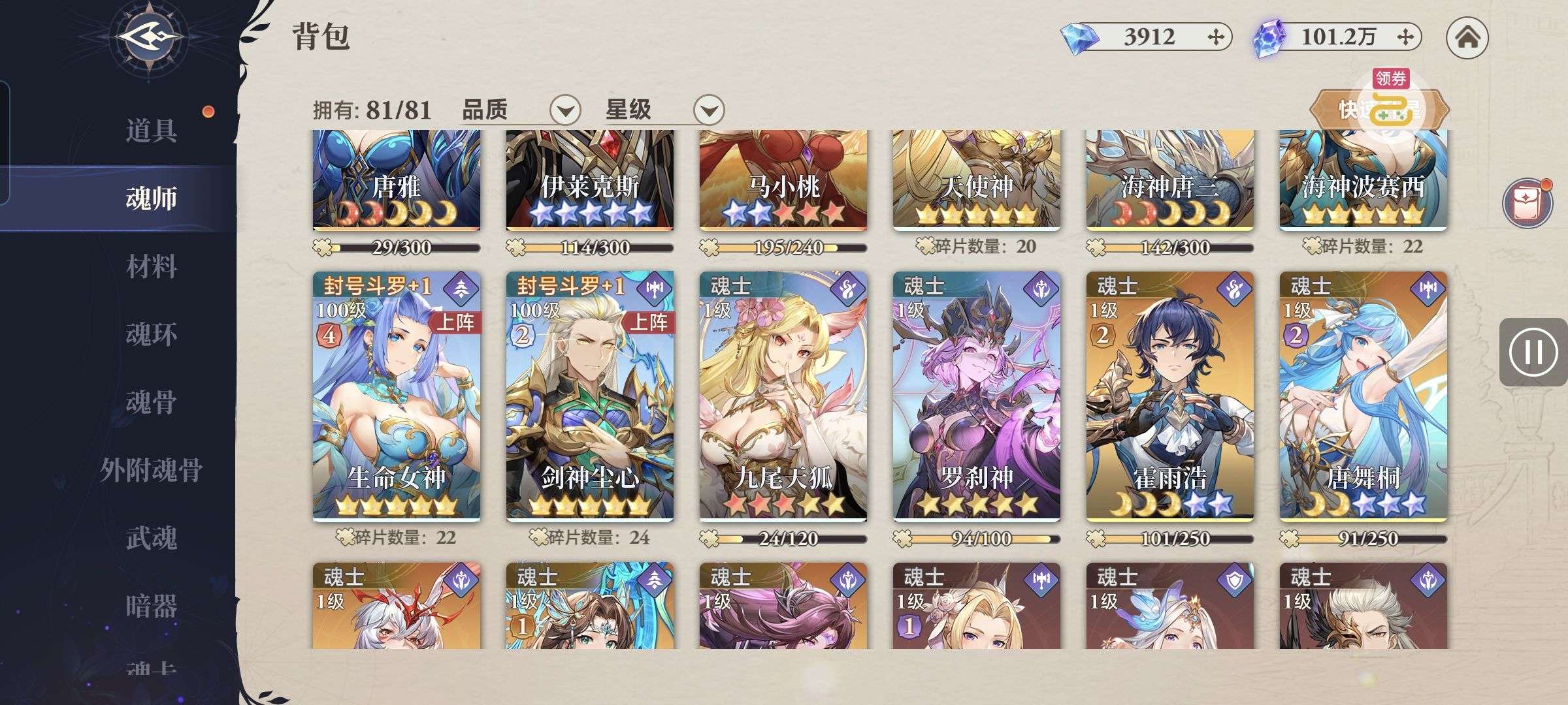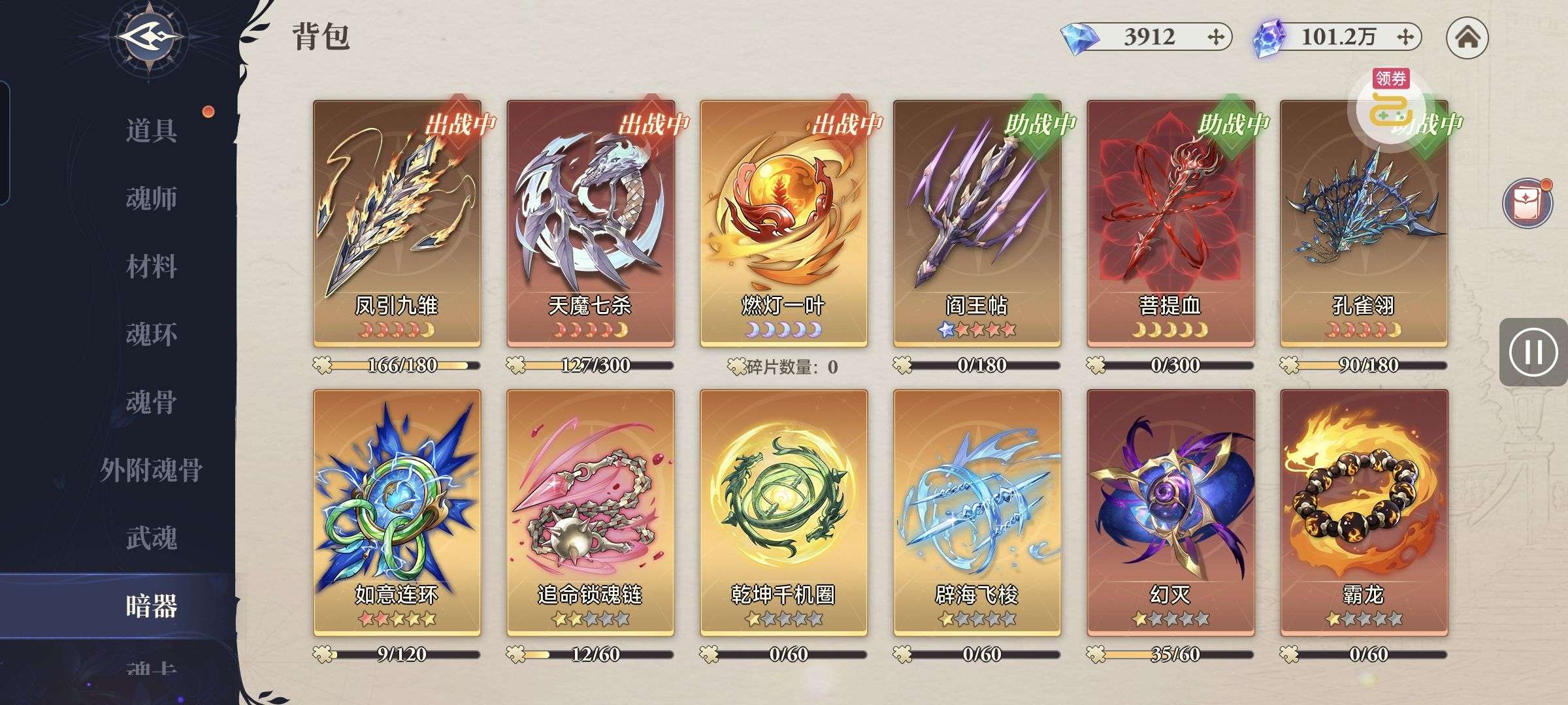 上阵暗器专属词条全有,硬件:魂卡、魂骨、外敷拉的算可以了,符石拉满,魂导器里神念穿透和任性也拉满了,目前跨区实战没对手,一队三队没有对手。想要的可以接手