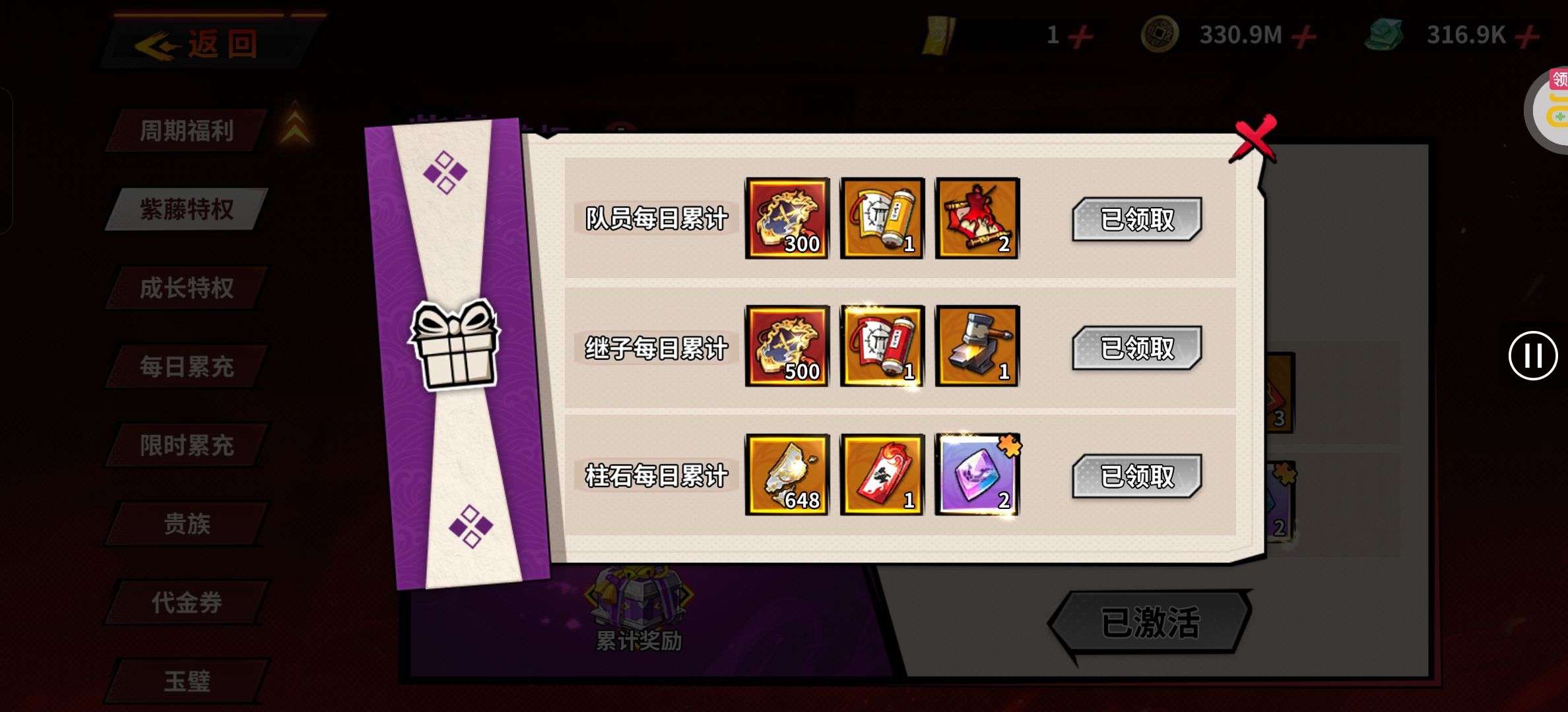五阵营输出自选包*1、豪华材料自选礼包*2、高级忍法帖*20(每个账号限领一次)