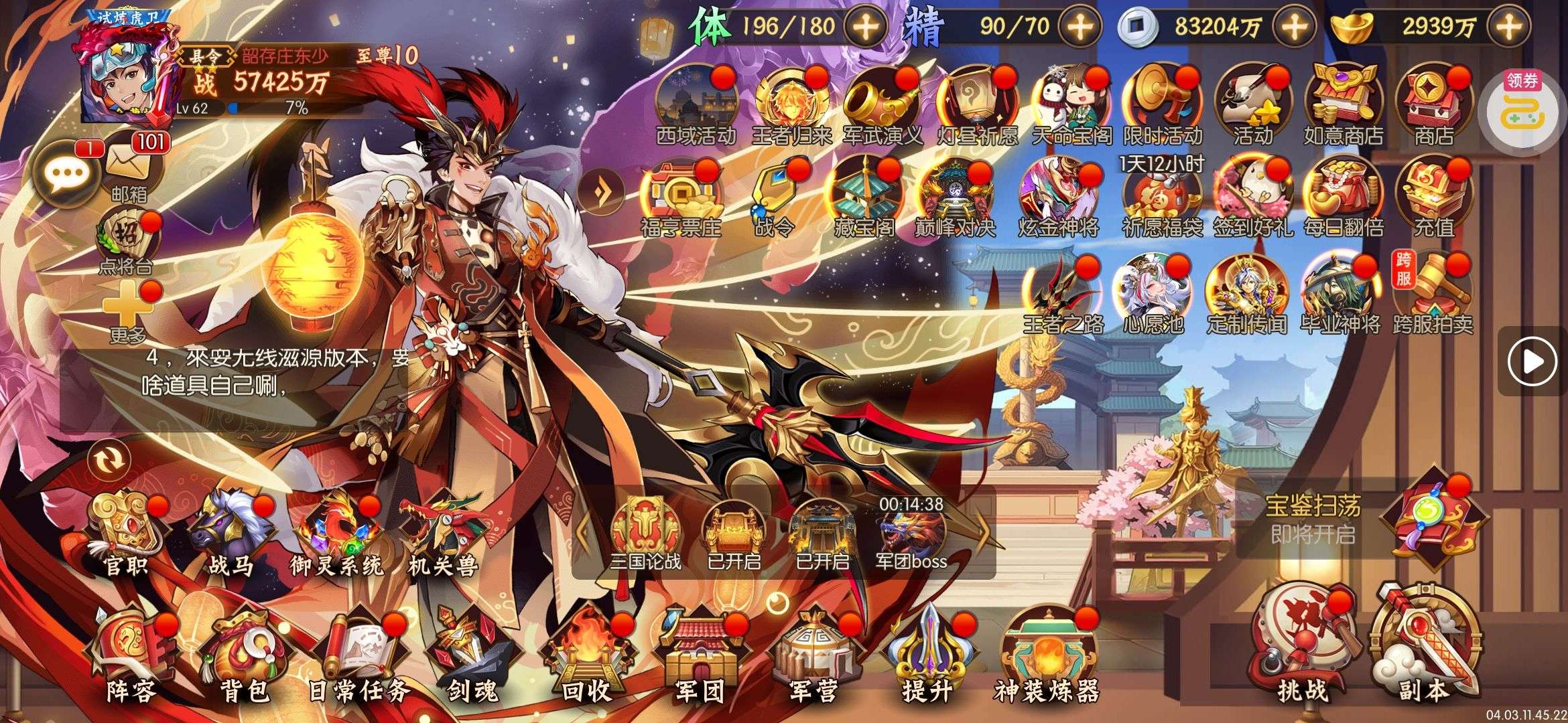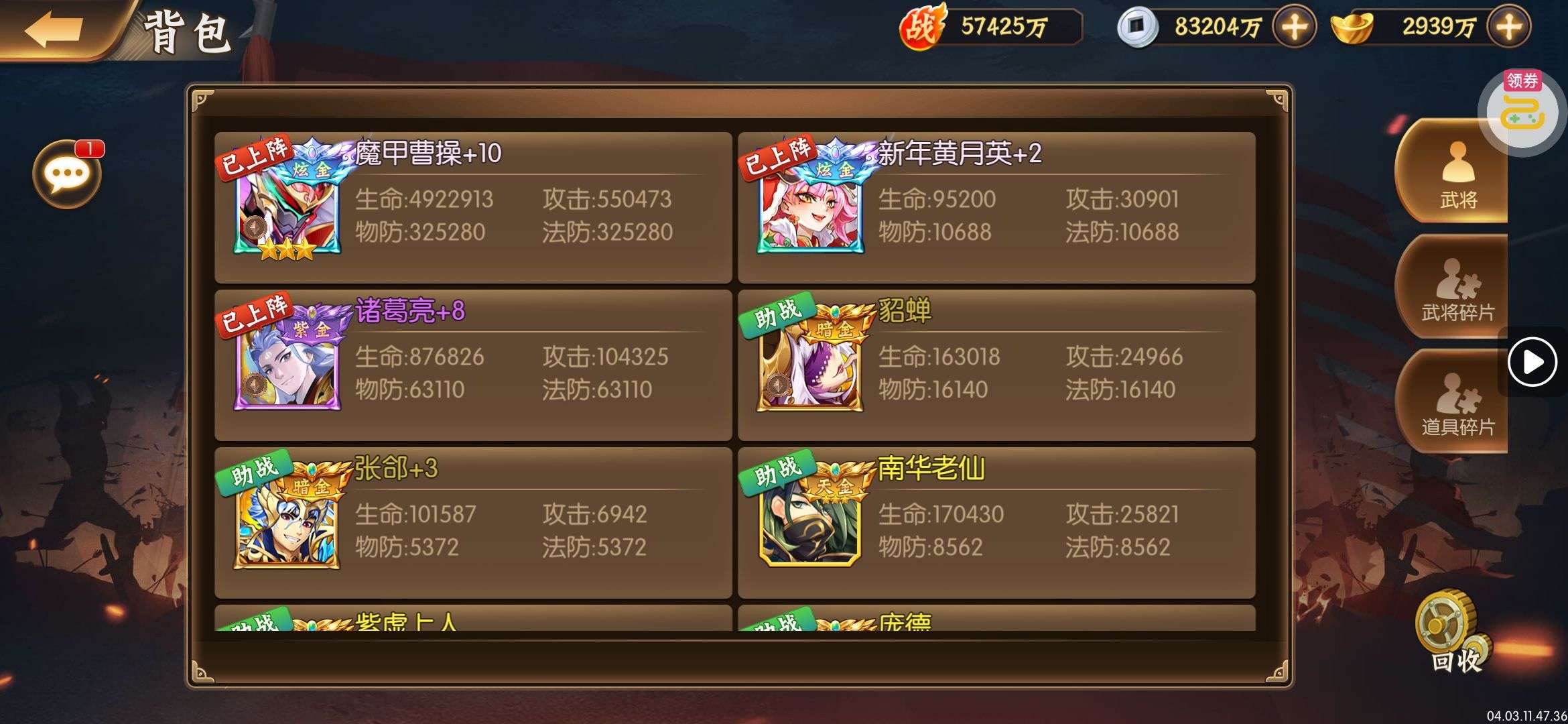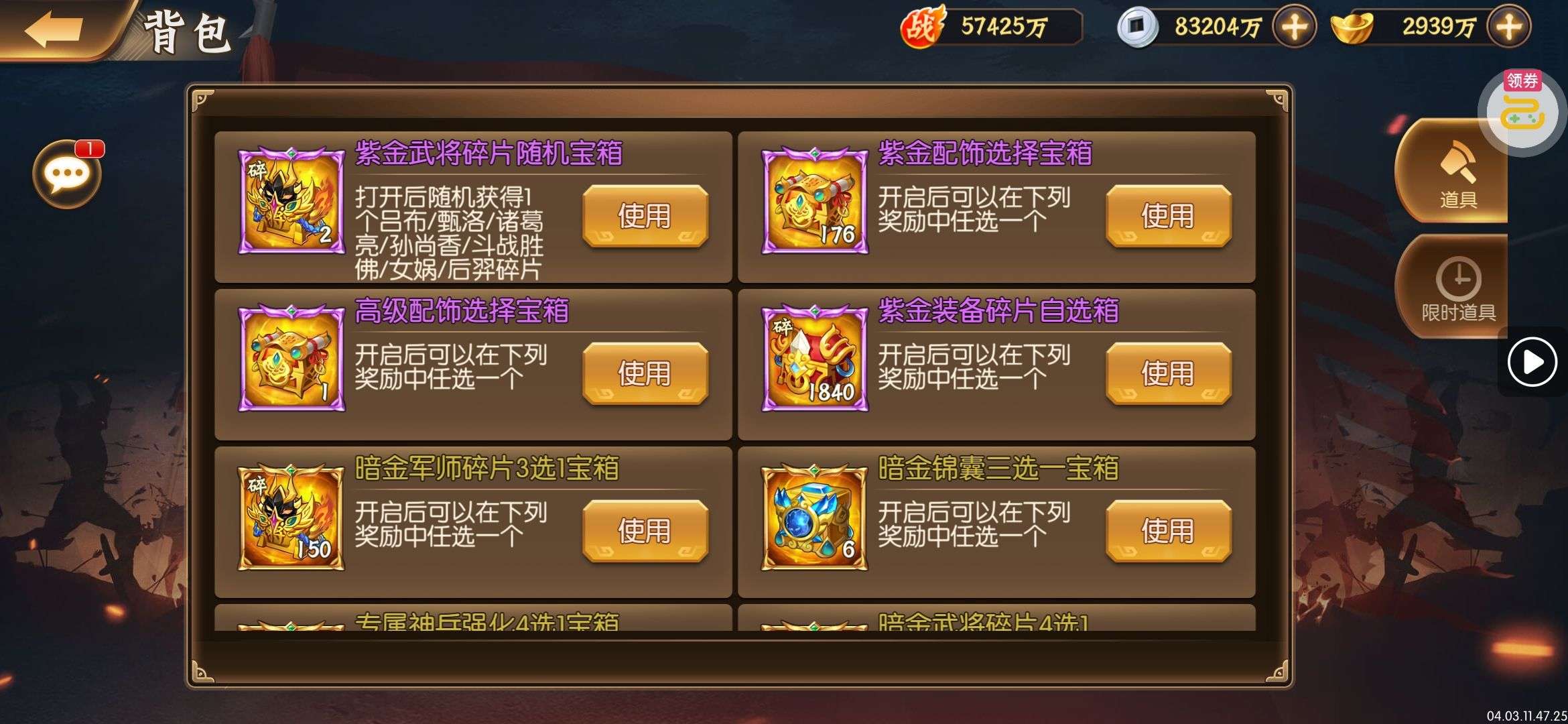 夺宝券*1、比武令*1、5星随机将魂*10(每个账号限领一次)