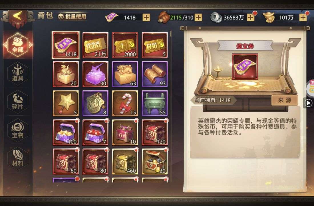 夺宝券*1、比武令*1、5星随机将魂*10(每个账号限领一次)