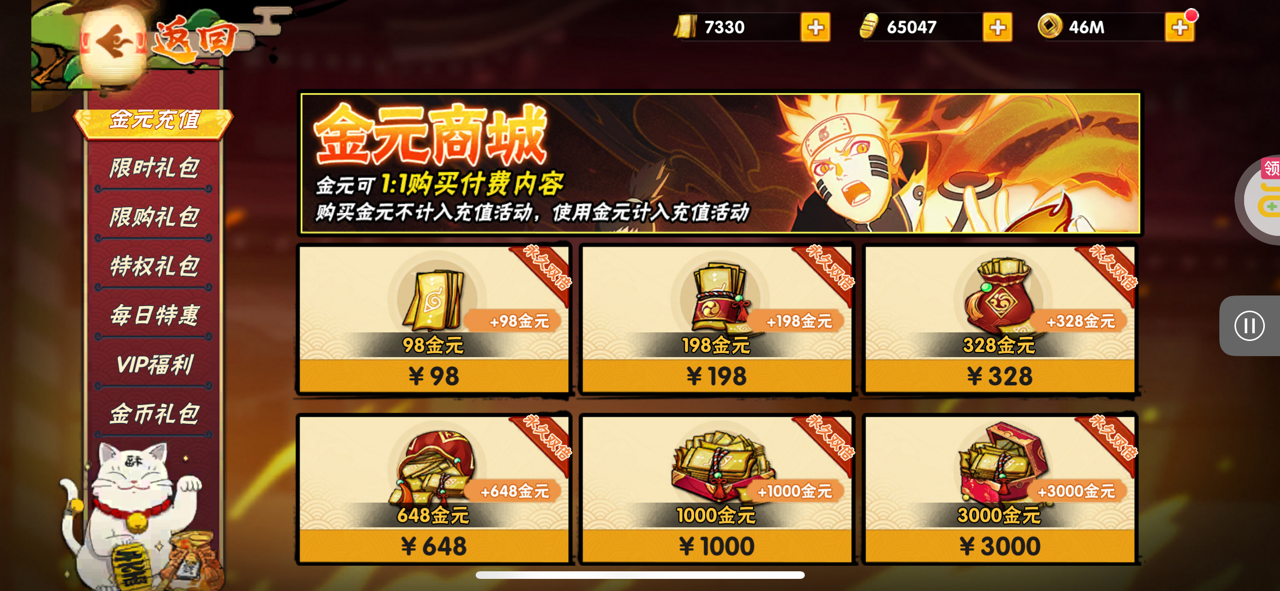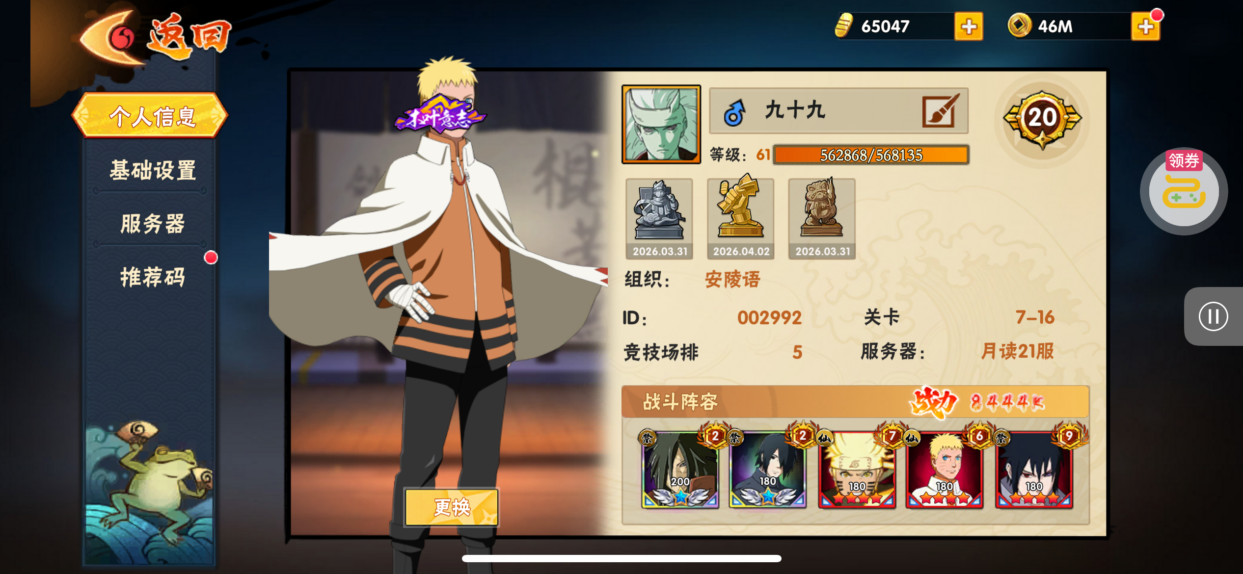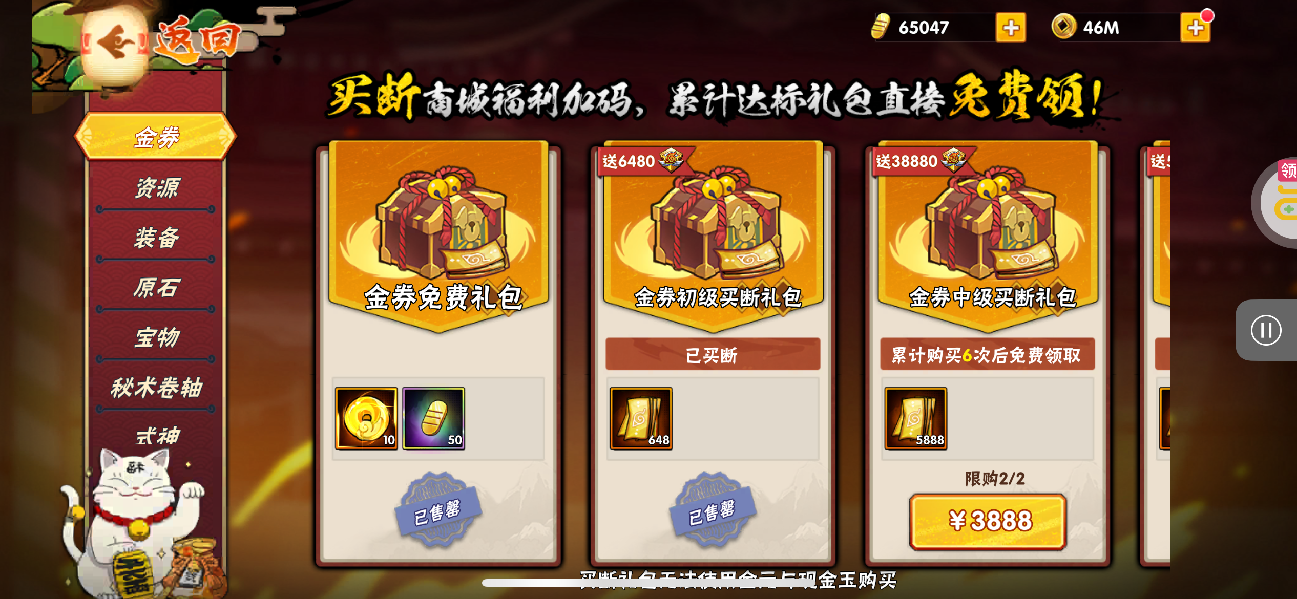五阵营输出自选包*1、豪华材料自选礼包*2、高级忍法帖*20(每个账号限领一次)