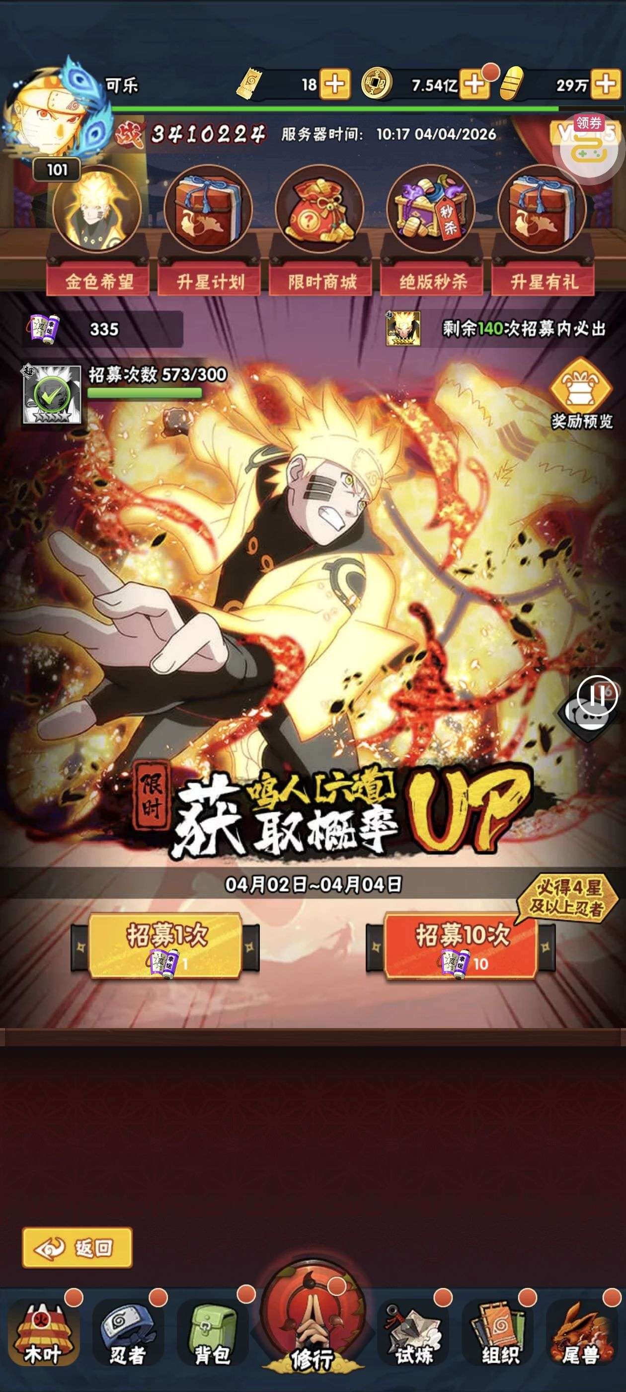 70级11星六道鸣人和尾鸣实充差不多100