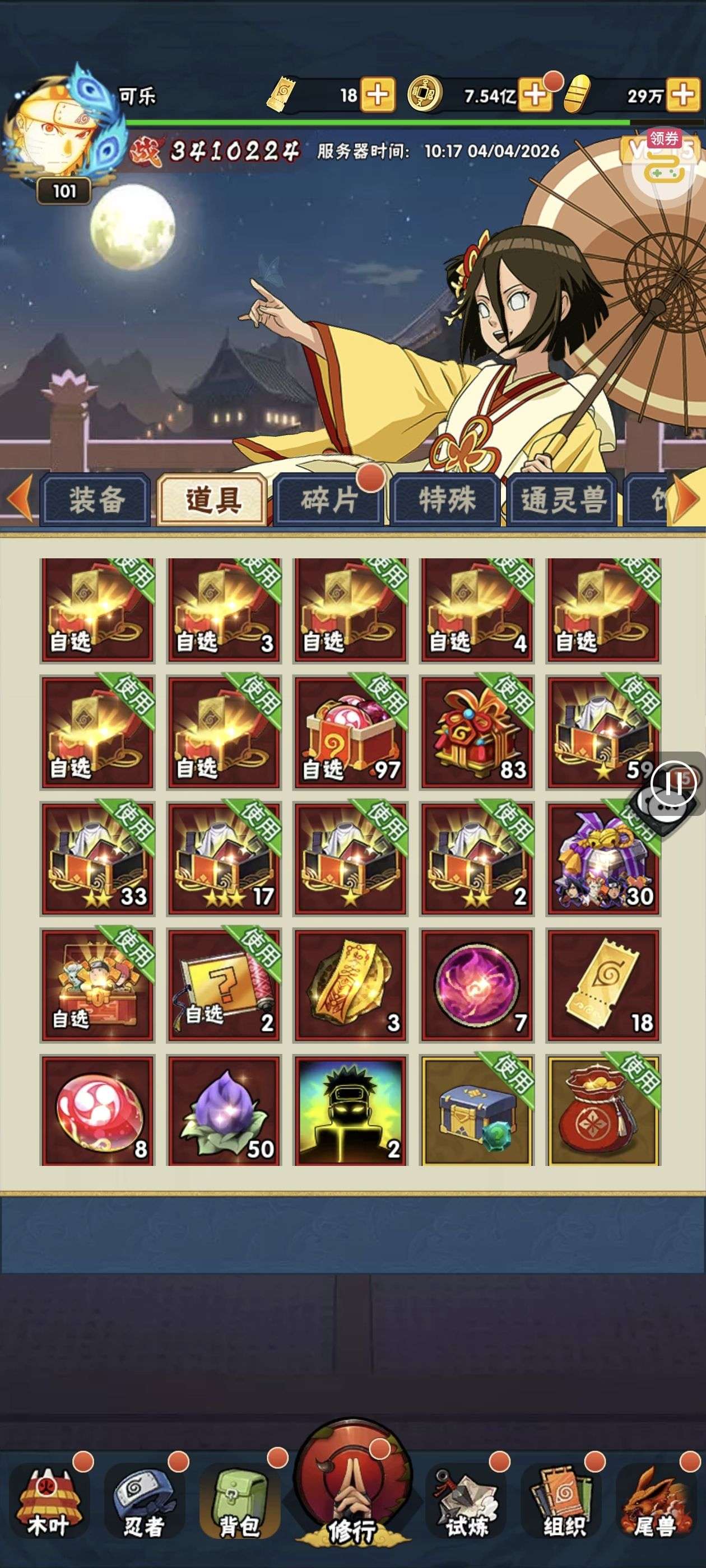 五阵营输出自选包*1、豪华材料自选礼包*2、高级忍法帖*20(每个账号限领一次)
