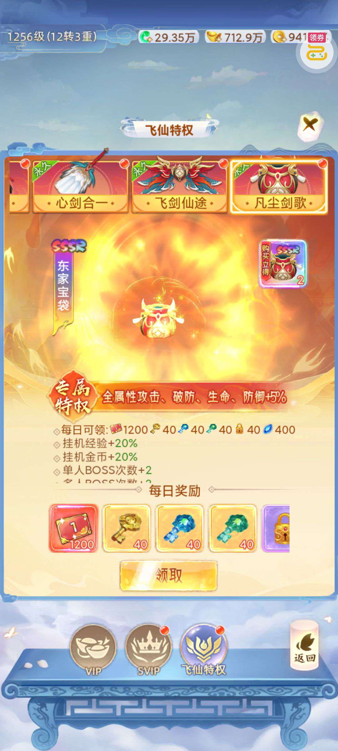 30张648真充卡豪礼、侠客灵丹*10、侠客神丹*10、侠客金丹*1、专属挑战令*1(每个账号限领一次)
