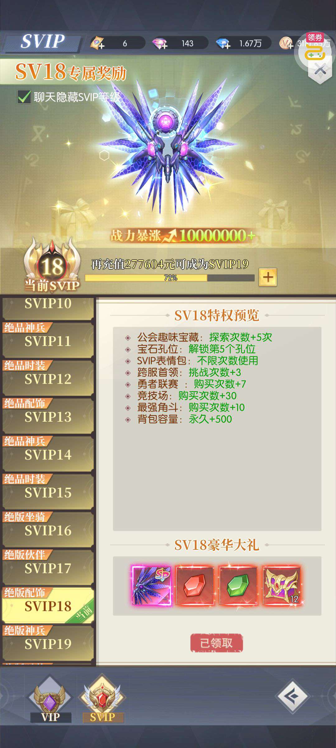30张648真充卡豪礼、侠客灵丹*10、侠客神丹*10、侠客金丹*1、专属挑战令*1(每个账号限领一次)