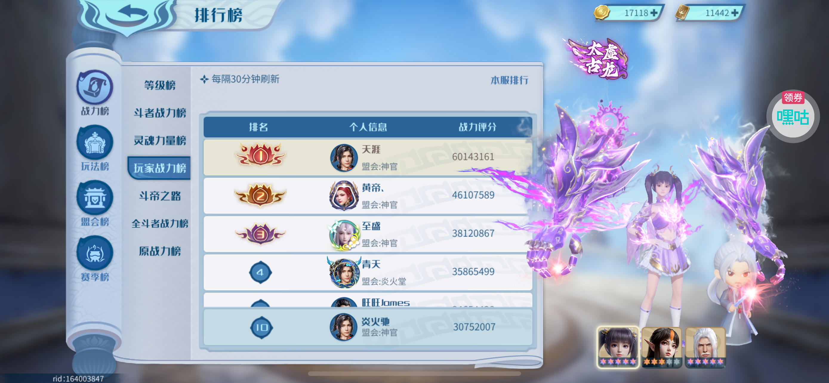 - 全服前十