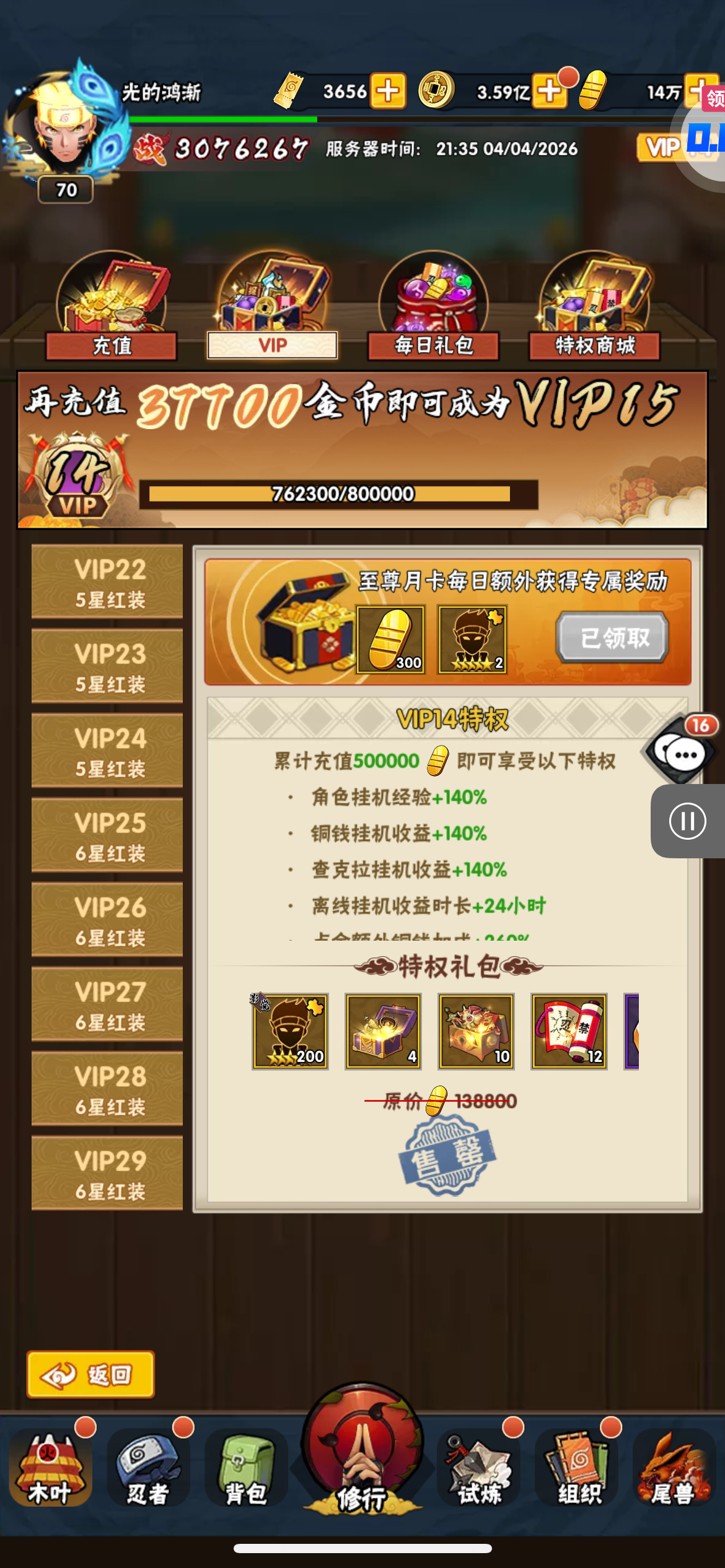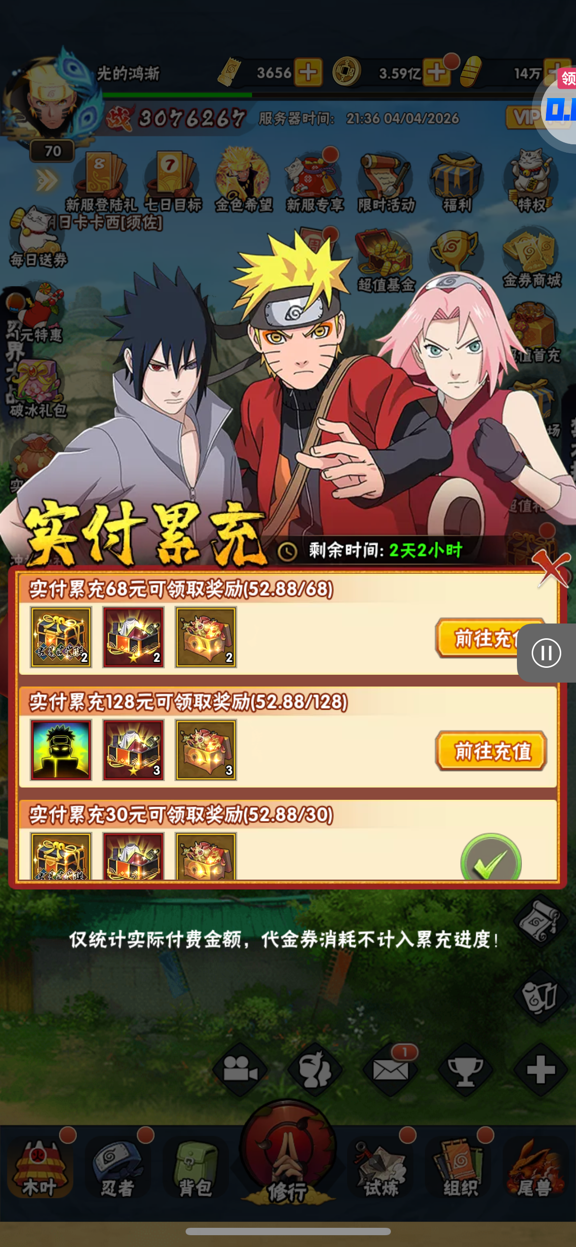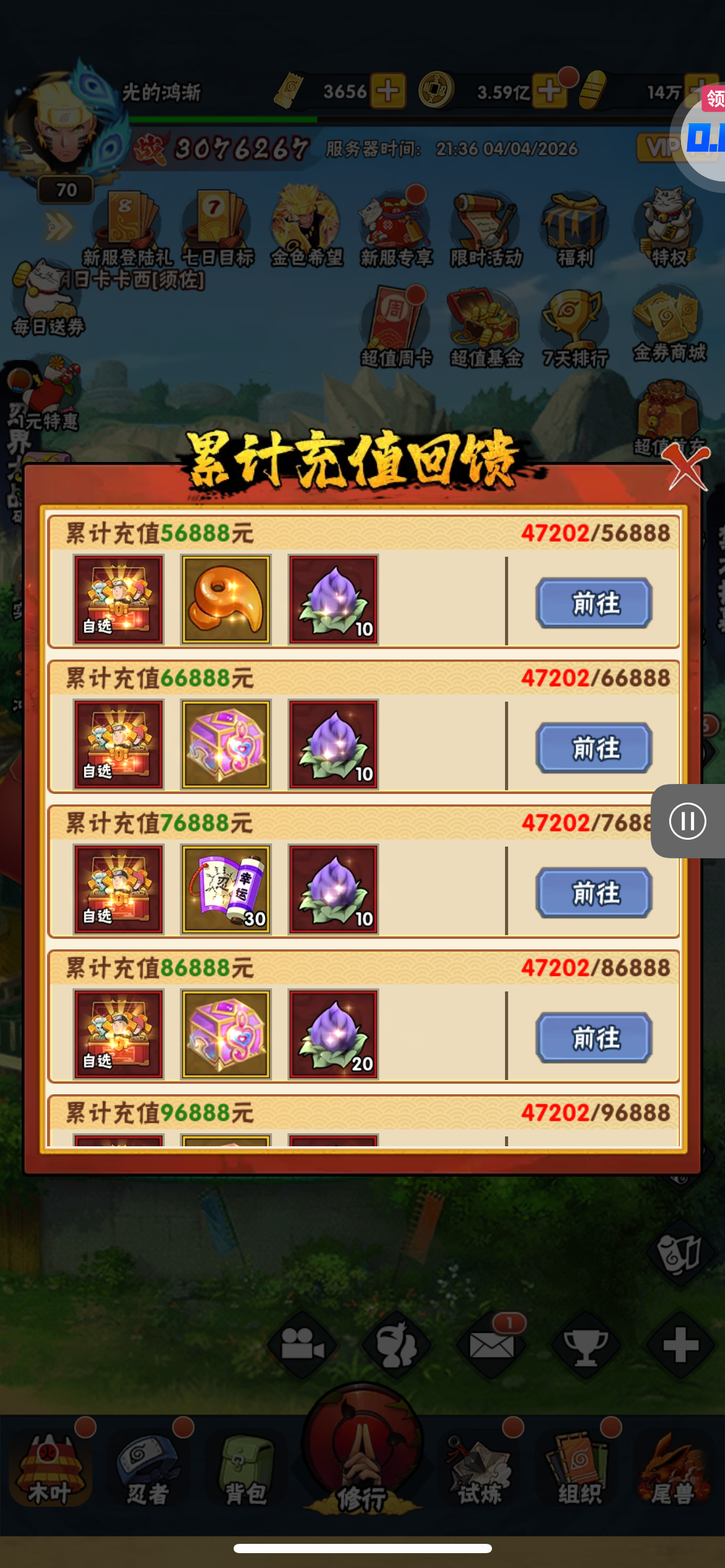 五阵营输出自选包*1、豪华材料自选礼包*2、高级忍法帖*20(每个账号限领一次)