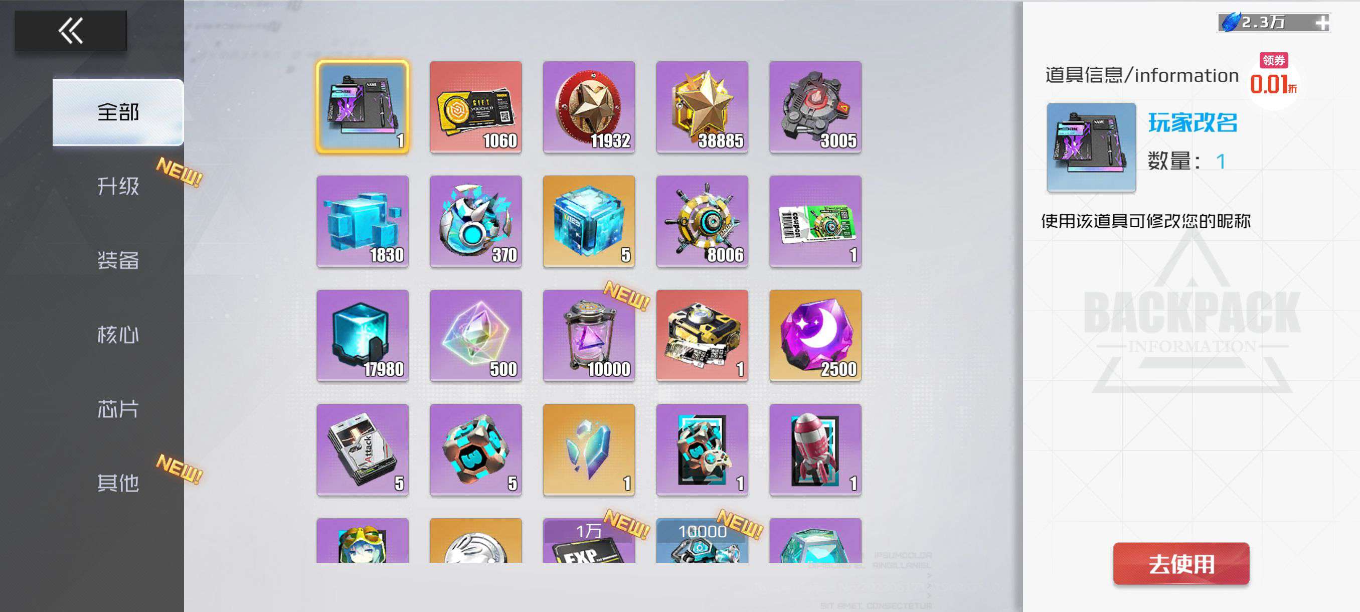 芯片熔炼石*1、离子探针*50、净化金属*50(每个账号限领一次)