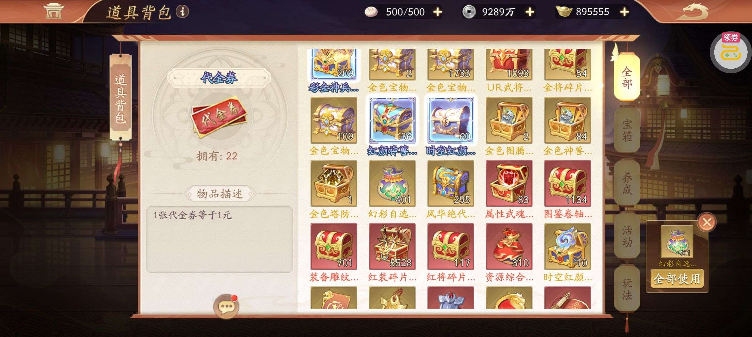 夺宝券*1、比武令*1、5星随机将魂*10(每个账号限领一次)