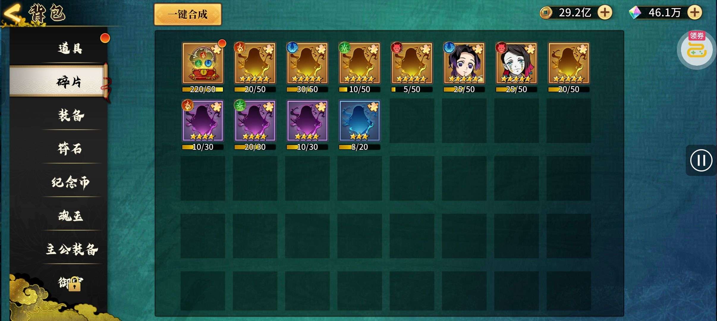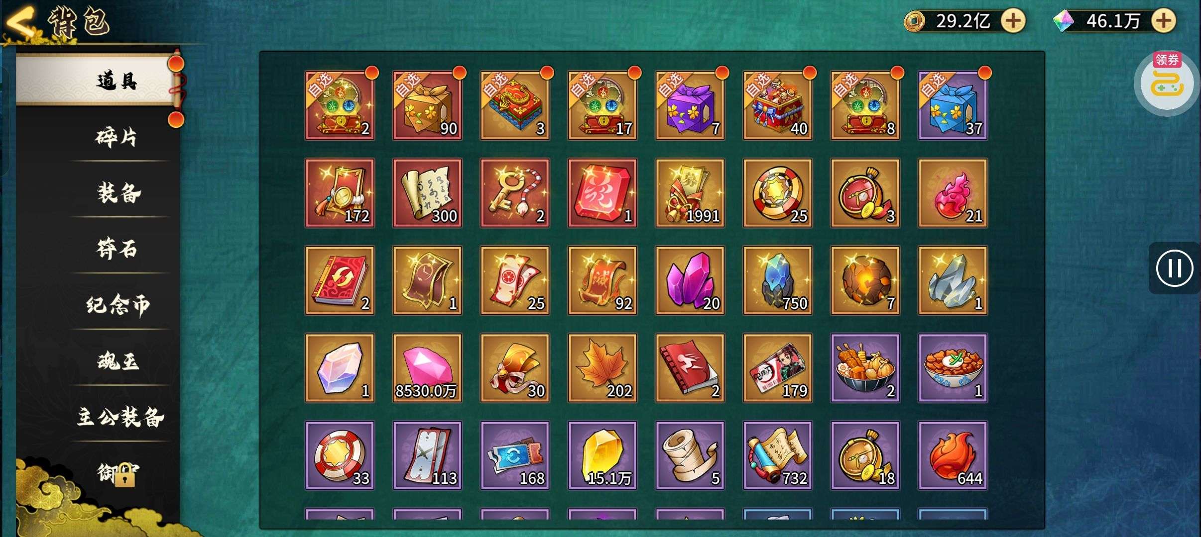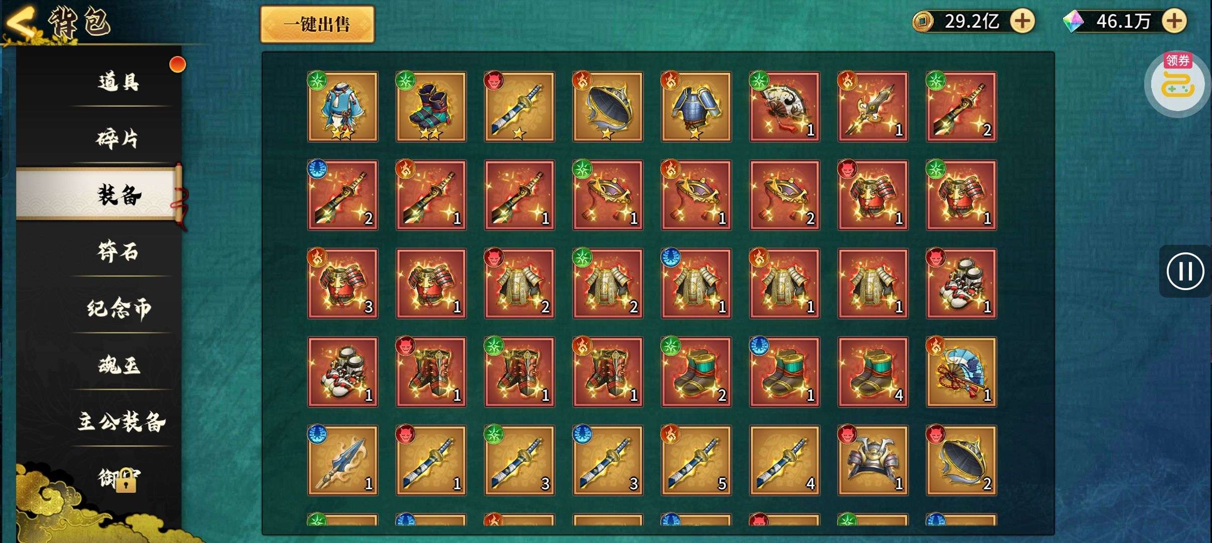 夺宝券*1、比武令*1、5星随机将魂*10(每个账号限领一次)