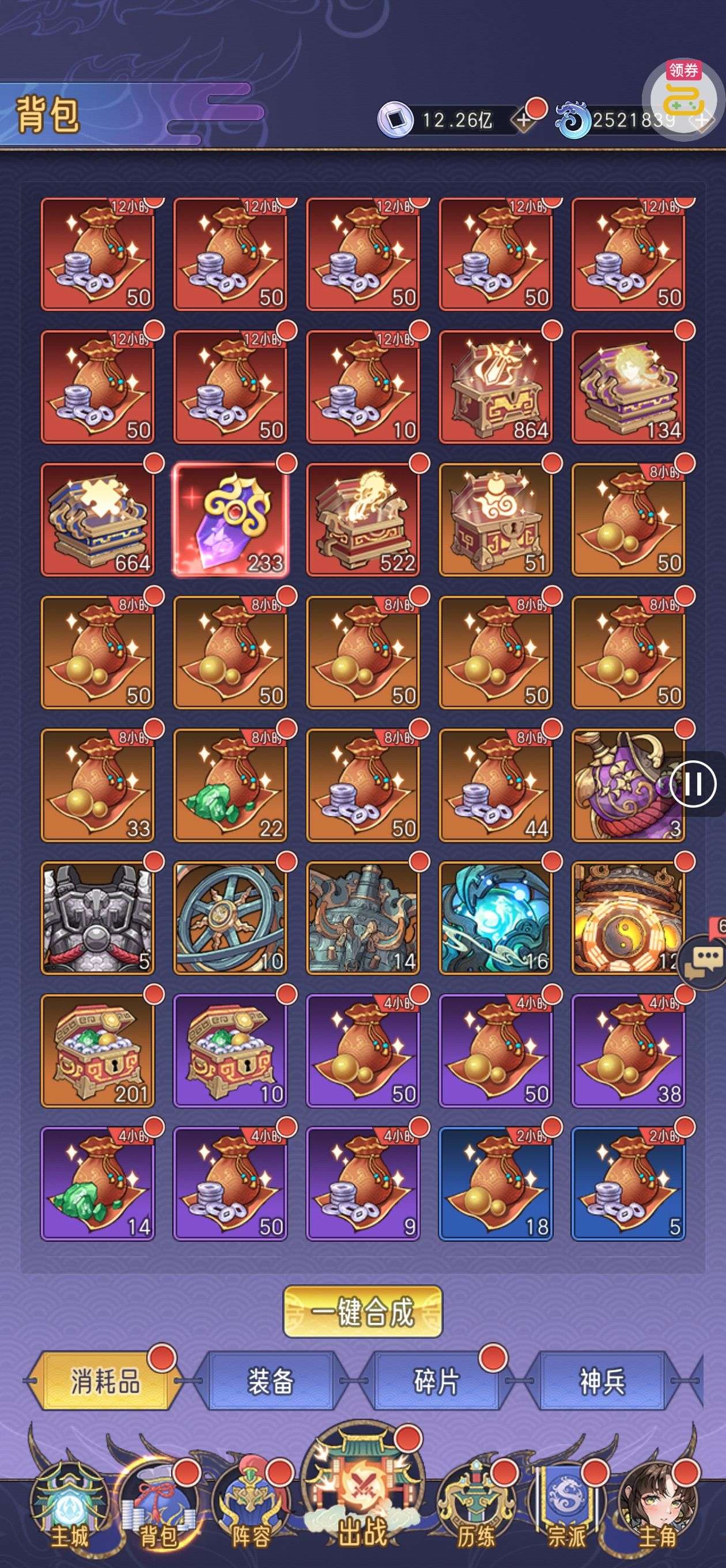 夺宝券*1、比武令*1、5星随机将魂*10(每个账号限领一次)