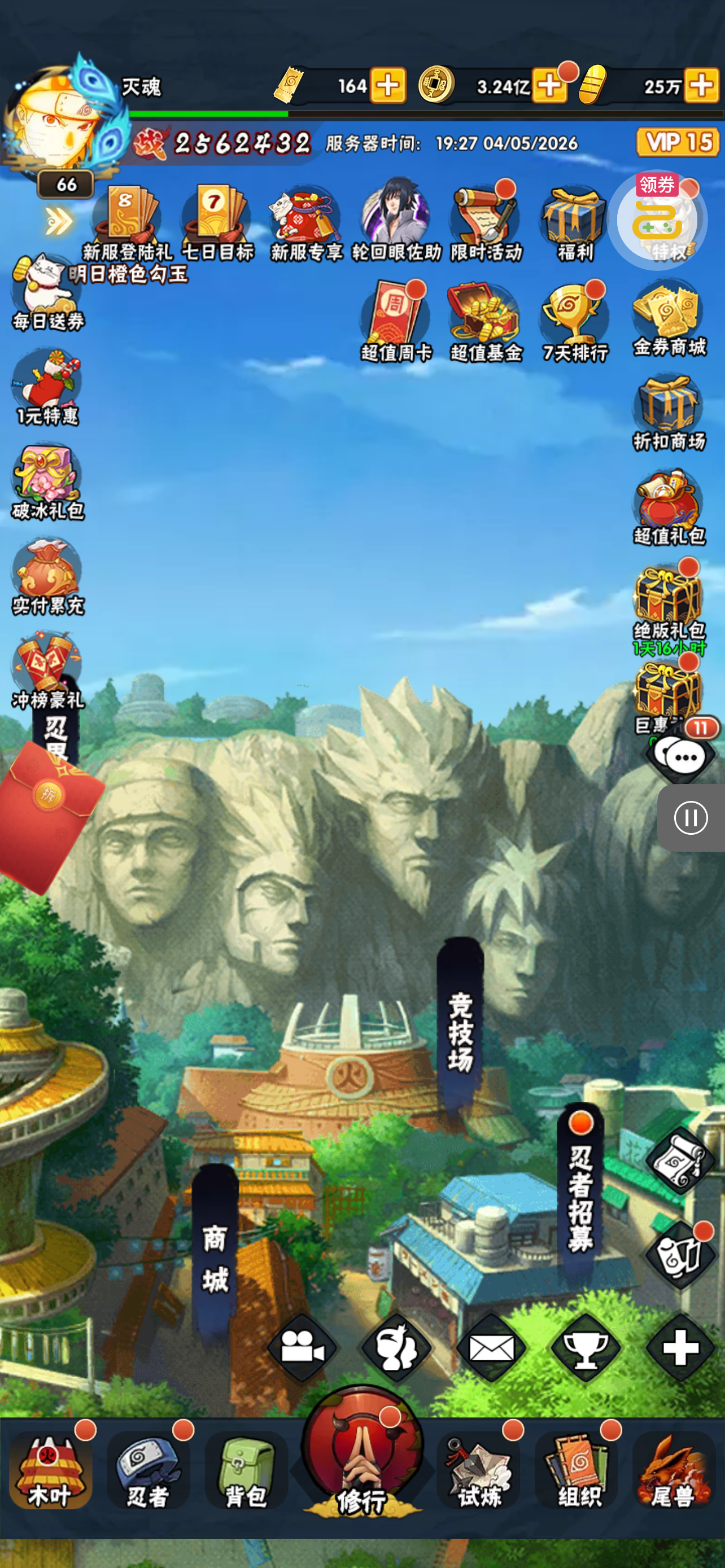 五阵营输出自选包*1、豪华材料自选礼包*2、高级忍法帖*20(每个账号限领一次)
