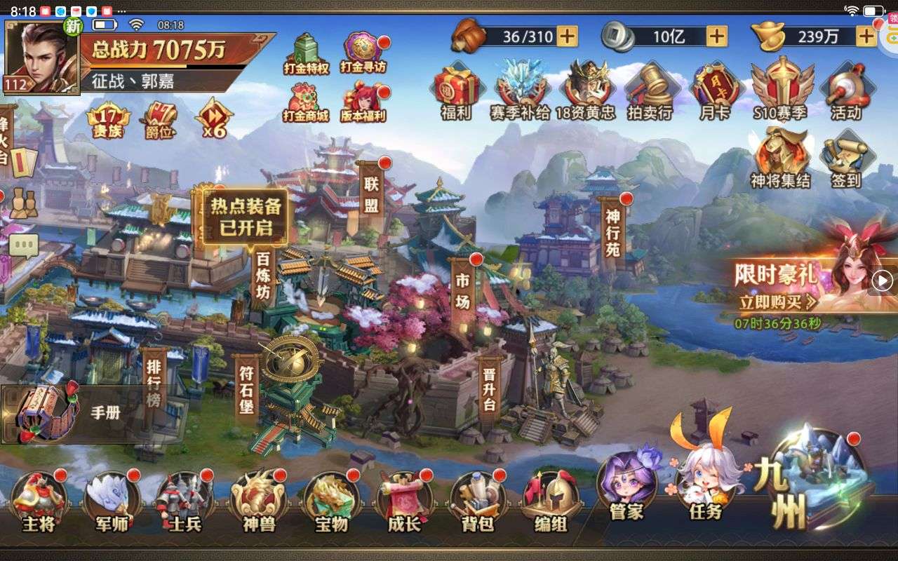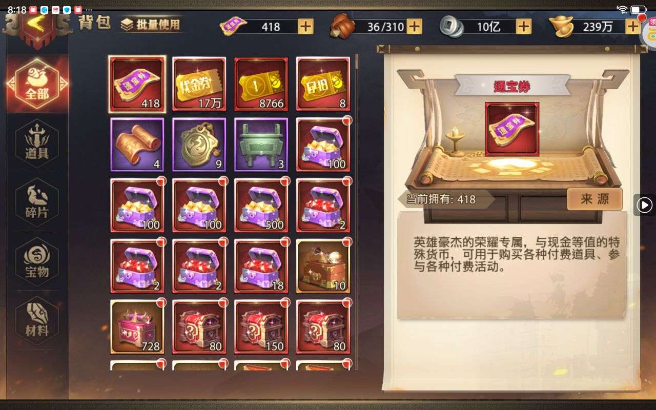 夺宝券*1、比武令*1、5星随机将魂*10(每个账号限领一次)