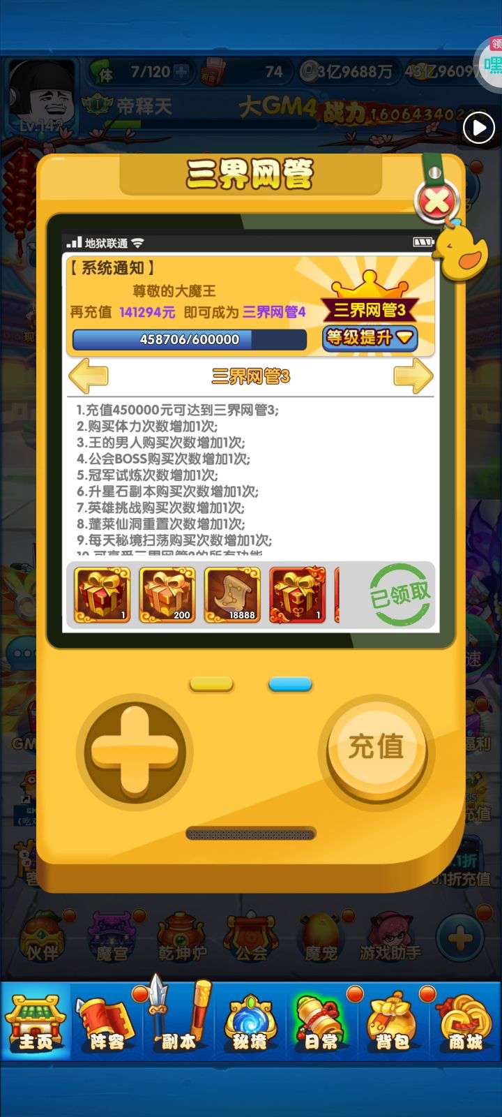 充了1700全区第一,开服3天