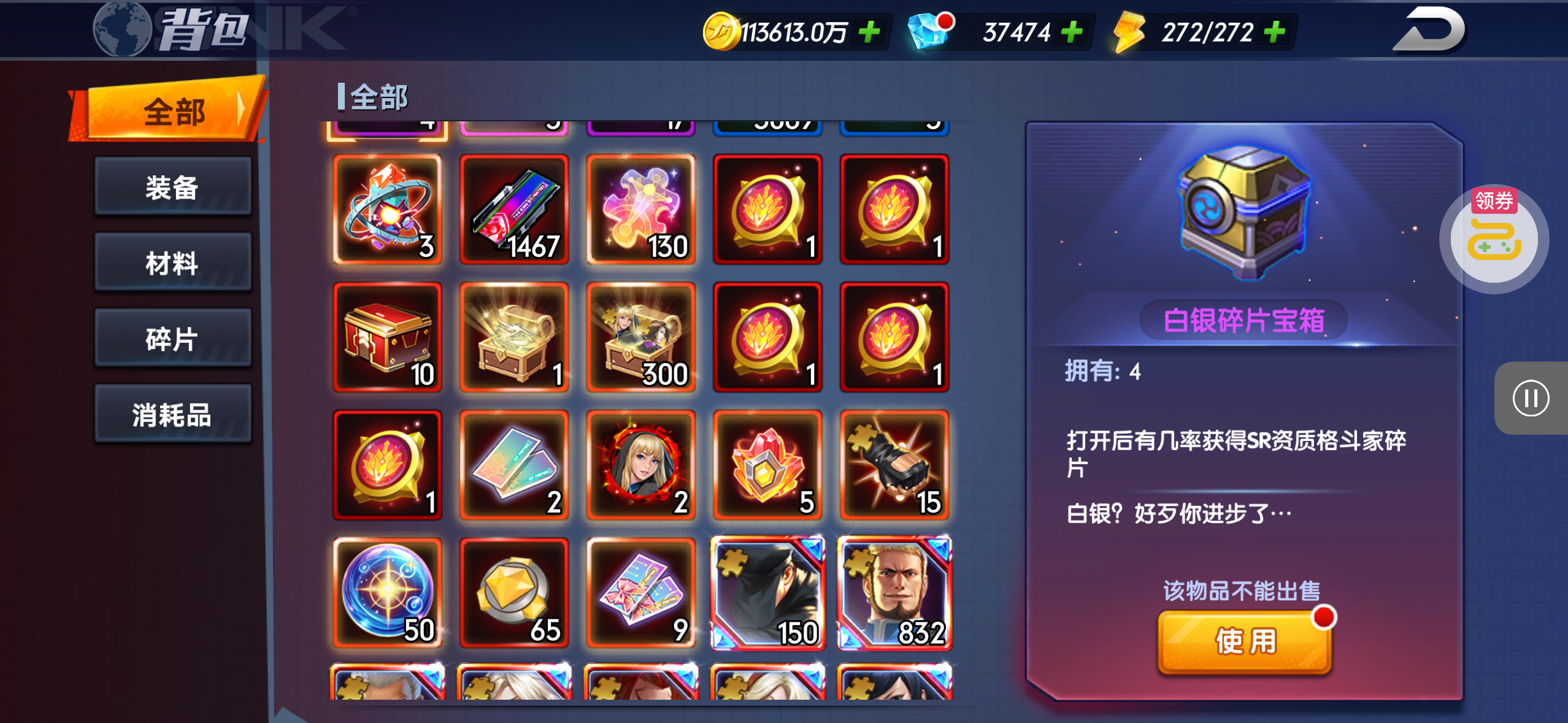 芯片熔炼石*1、离子探针*50、净化金属*50(每个账号限领一次)