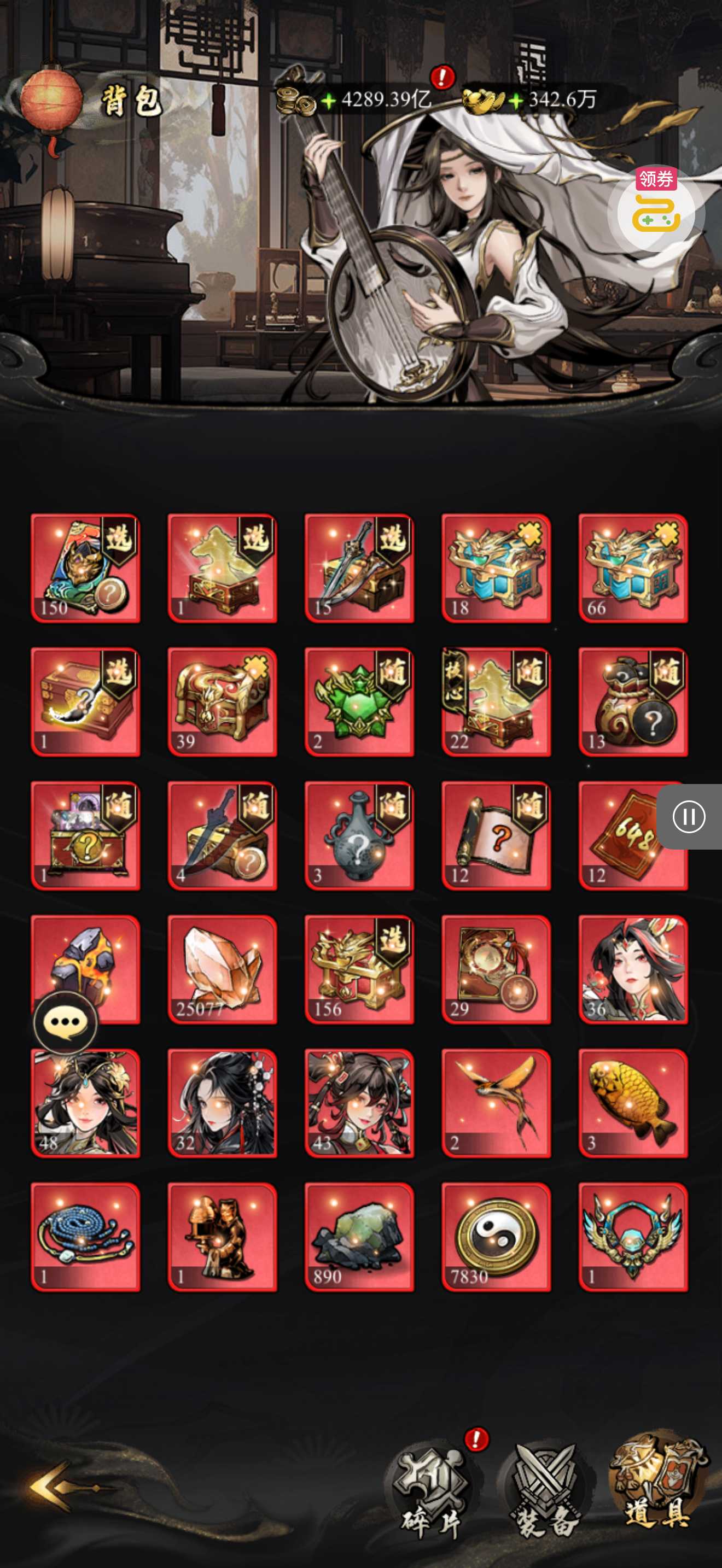 夺宝券*1、比武令*1、5星随机将魂*10(每个账号限领一次)