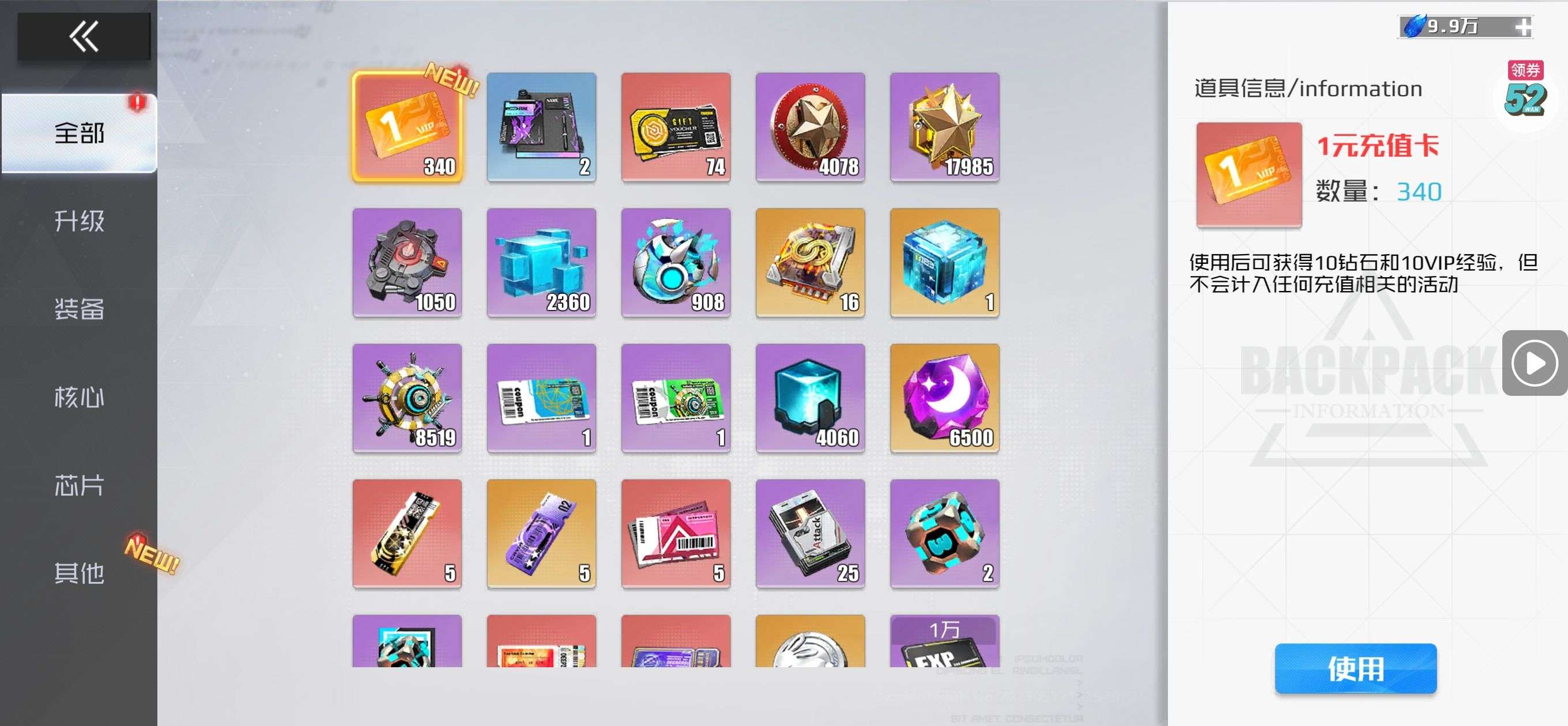 芯片熔炼石*1、离子探针*50、净化金属*50(每个账号限领一次)