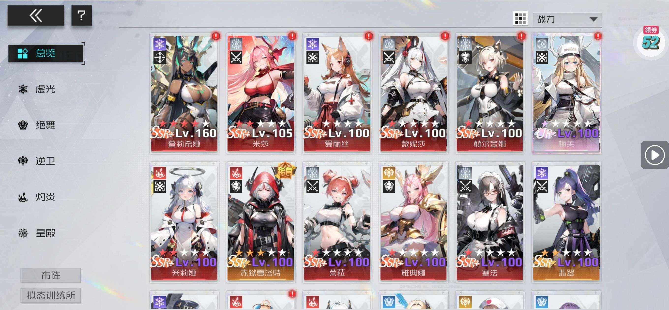 雅典娜队,有买8皮肤,除部分UR其他角色都收集了,UR券还有370张,其他券各几百张,各类月卡都有剩余。