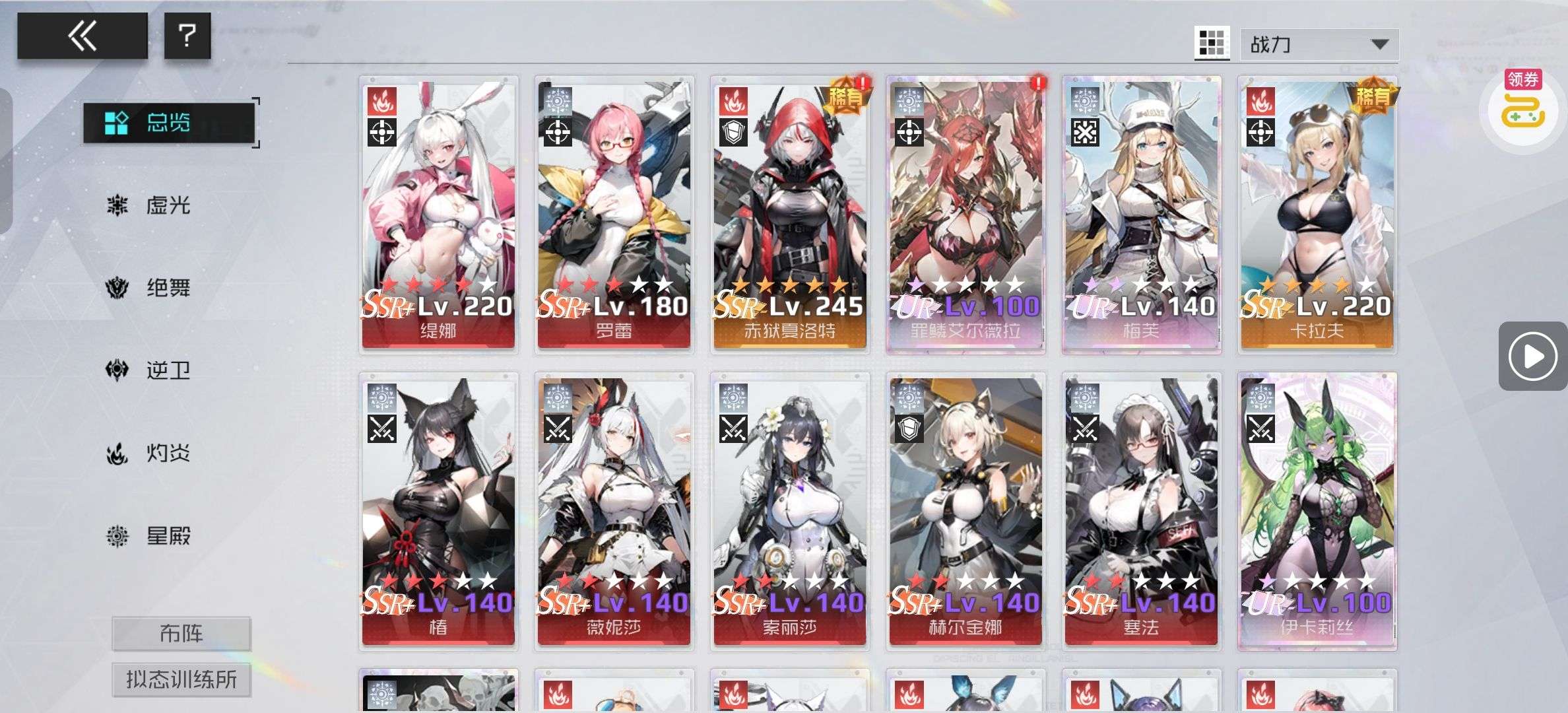 雅典娜队,有买8皮肤,除部分UR其他角色都收集了,UR券还有370张,其他券各几百张,各类月卡都有剩余。